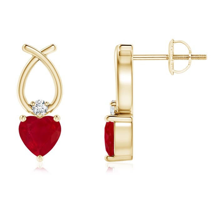 ANGARA 0.63 Ctw Heart Shaped Ruby Ribbon Earrings in 14K Solid Gold