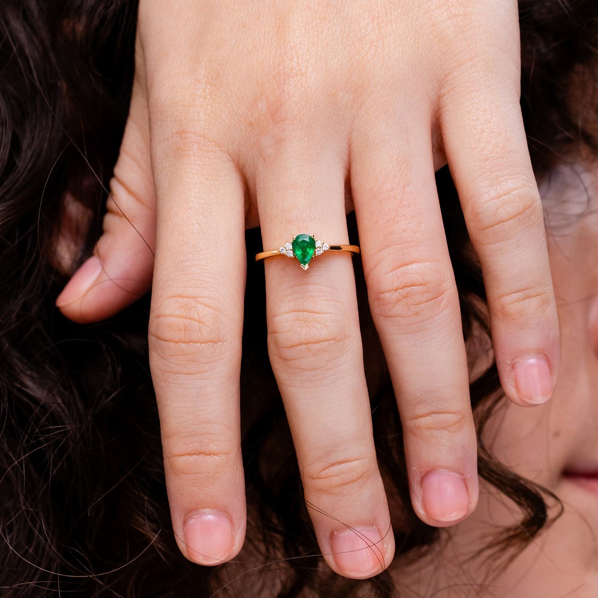 ANGARA 0.4Ct Lab Grown Pear Emerald Solitaire Ring with Trio Diamond in 14K Gold