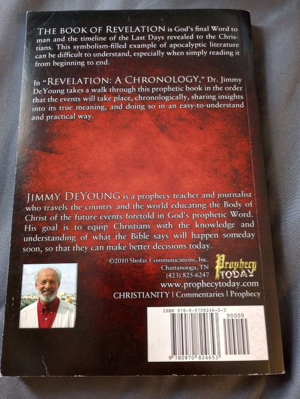 Revelation : A Chronology by Jimmy DeYoung, brand new with a creased corner on back cover.