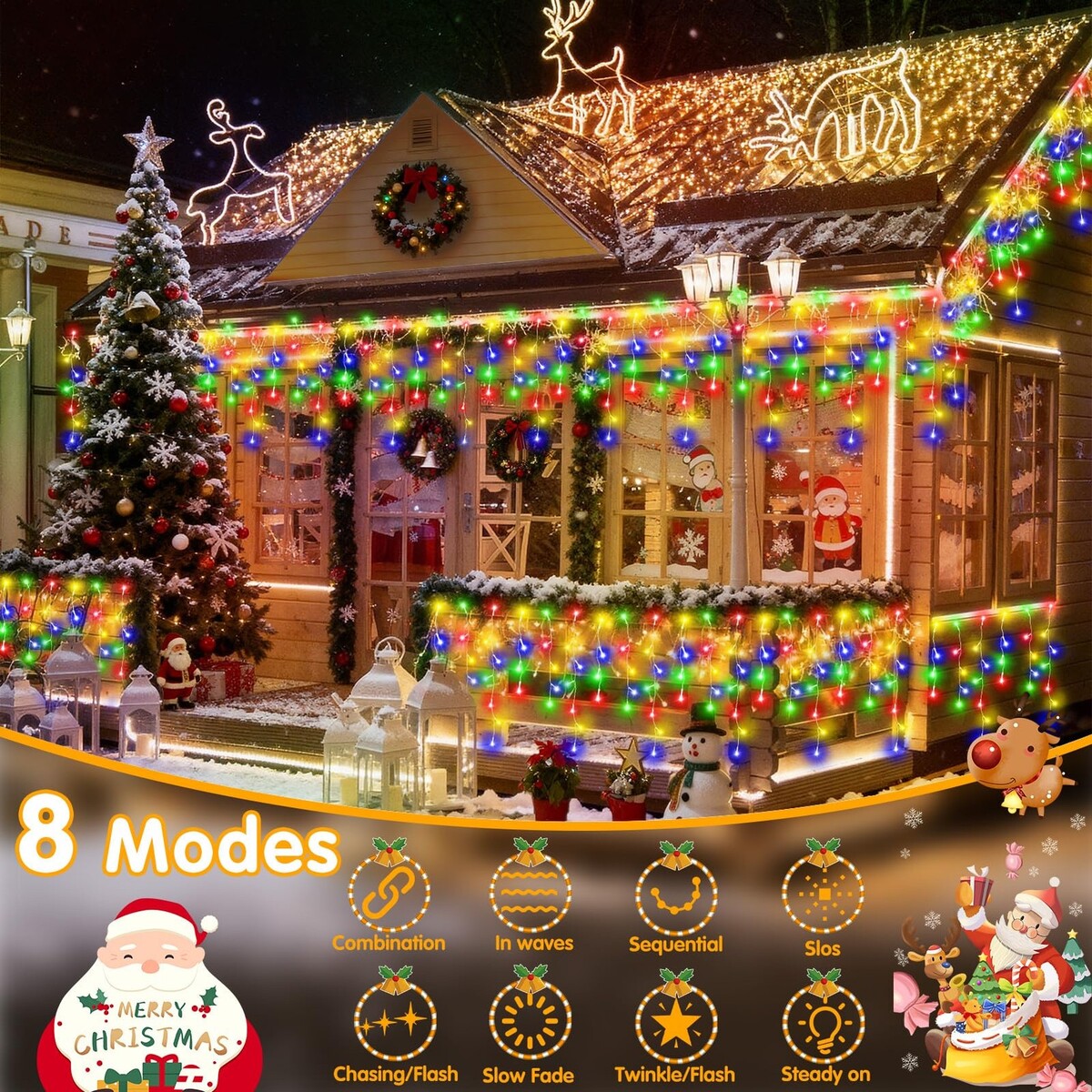 Cascada De Luces 400 LED Navideñas 33FT Decoracion Navidad Para Exterior Xmas