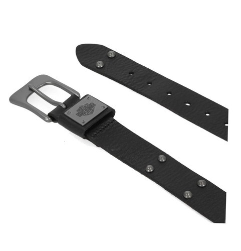 The Harley-Davidson Men's Western Dome Studded Genuine Leather Belt in black is a stylish and rugged accessory for men. Made from high-quality leather with a solid pattern, this belt features a studded design and a Western theme. The casual belt style and regular size make it perfect for everyday wear, adding a touch of edgy flair to any outfit. Perfect for Harley-Davidson enthusiasts looking for a durable and fashionable addition to their wardrobe. New with tag. Size 44.