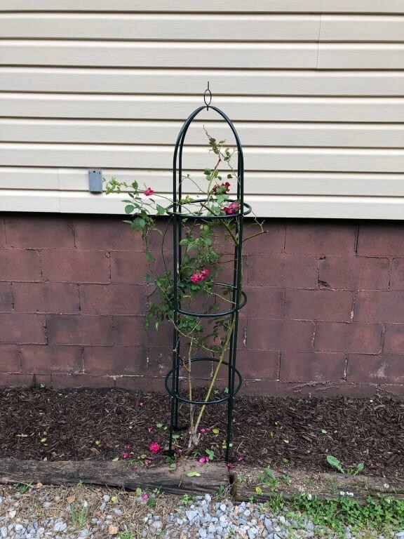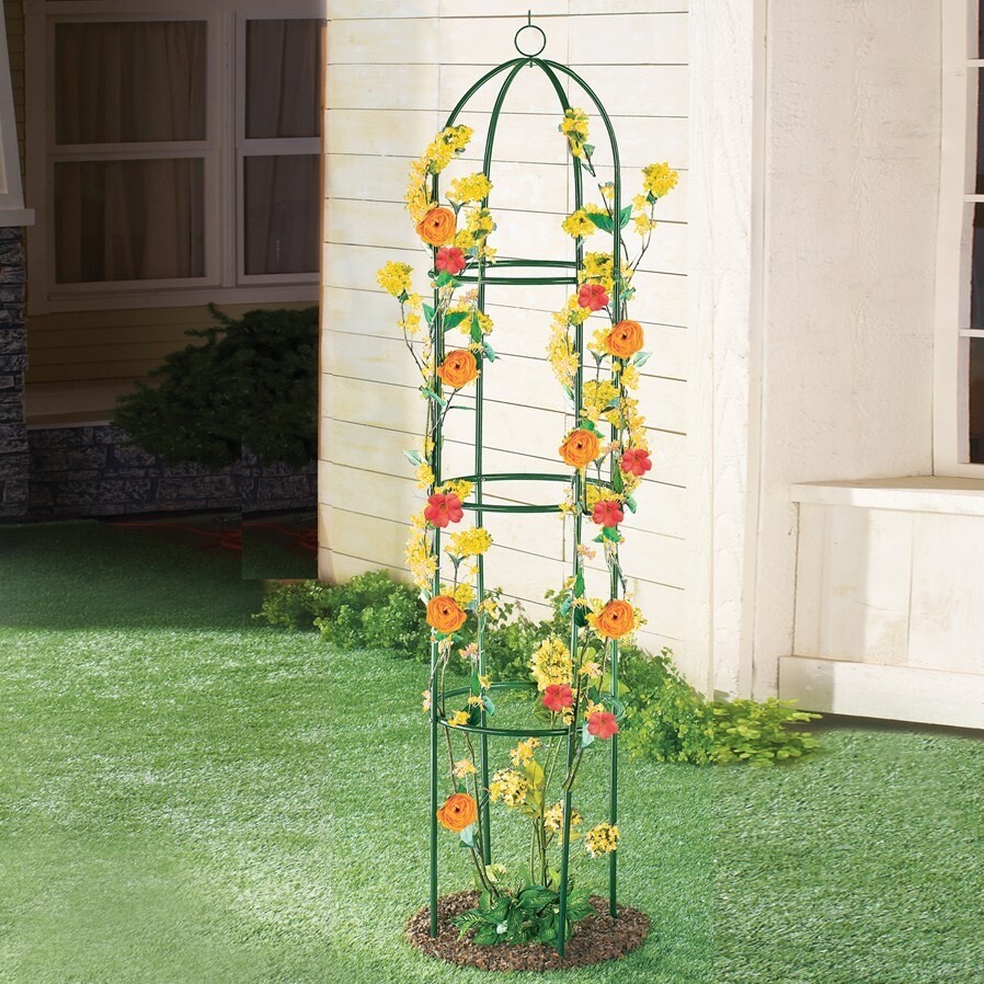 This sturdy trellis gives your climbing plants and vines plenty of room and support to grow their best, and the elegant design looks lovely even after the growing season ends. Made of iron with a green finish, it stands over 6-feet tall and is a beautiful way to showcase your climbing flowers and vines. Stakes securely into the ground.