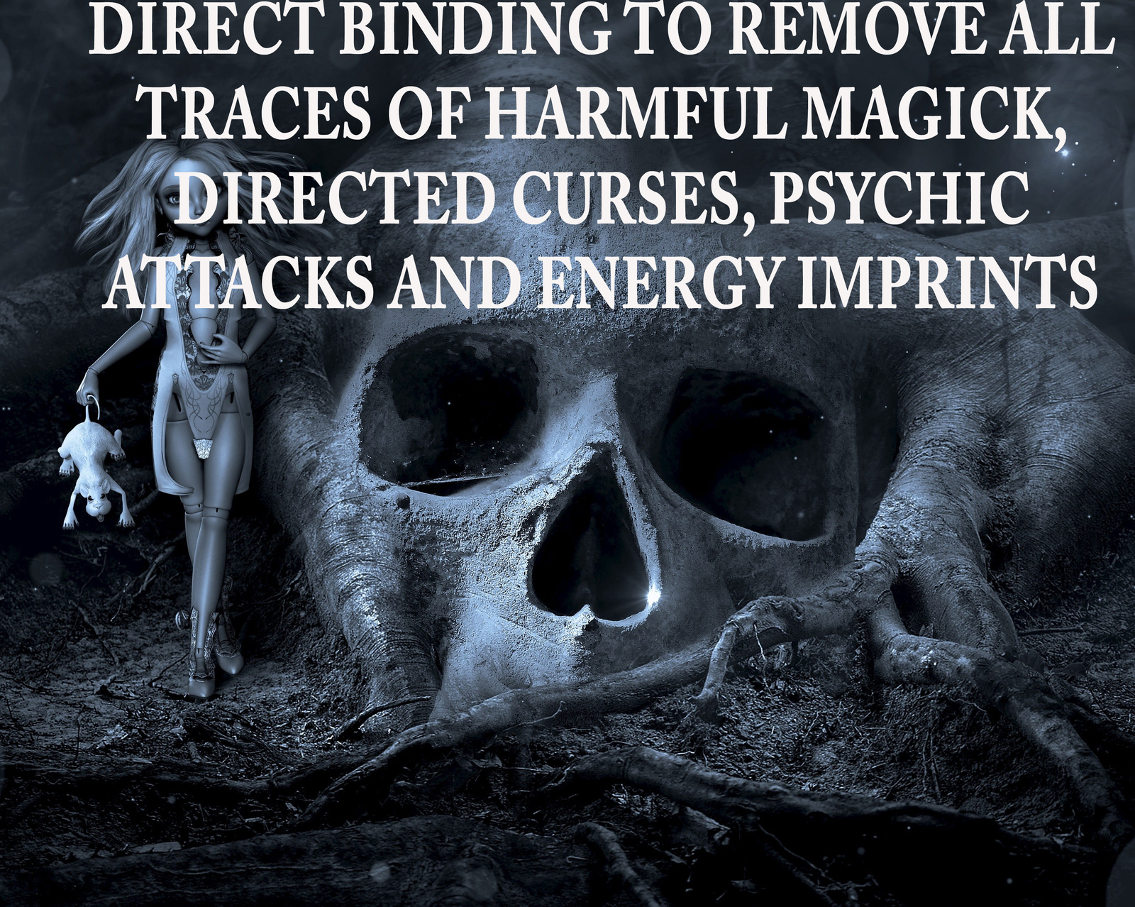 THIS DIRECT BINDING WILL ERADICATE AND ELIMINATE ALL ACCUMULATED, HARBORED, ATTACHED AND IMPRINTED NEGATIVE ENERGIES, HEXES, CURSES, STOP ENERGY ATTACKS AND REMOVE ALL NEGTAIVE IMPRINTED ENERGIES