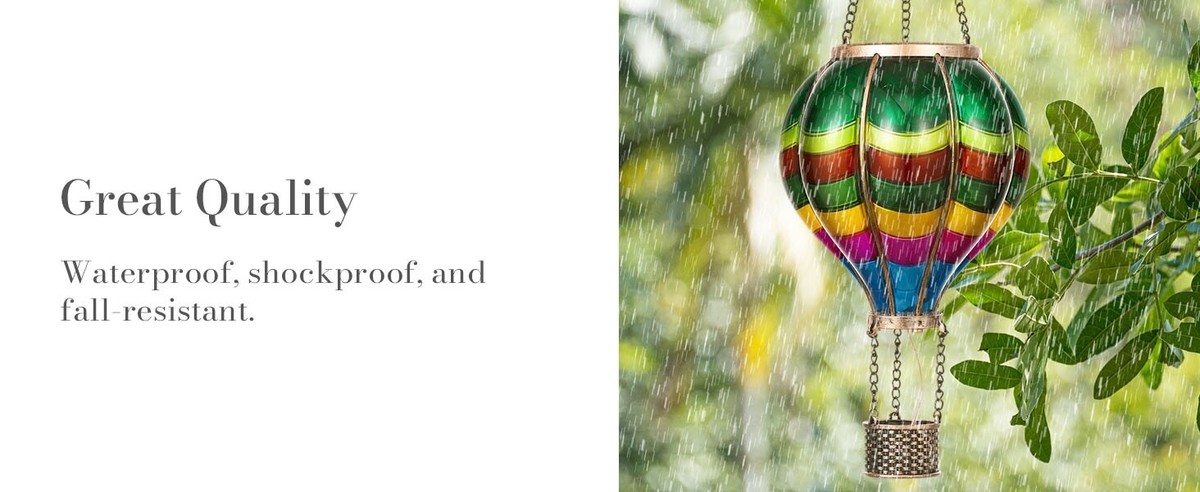Package Includes: 1 - Solar Powered Colorful Hot Air Balloon Hanging Mobile