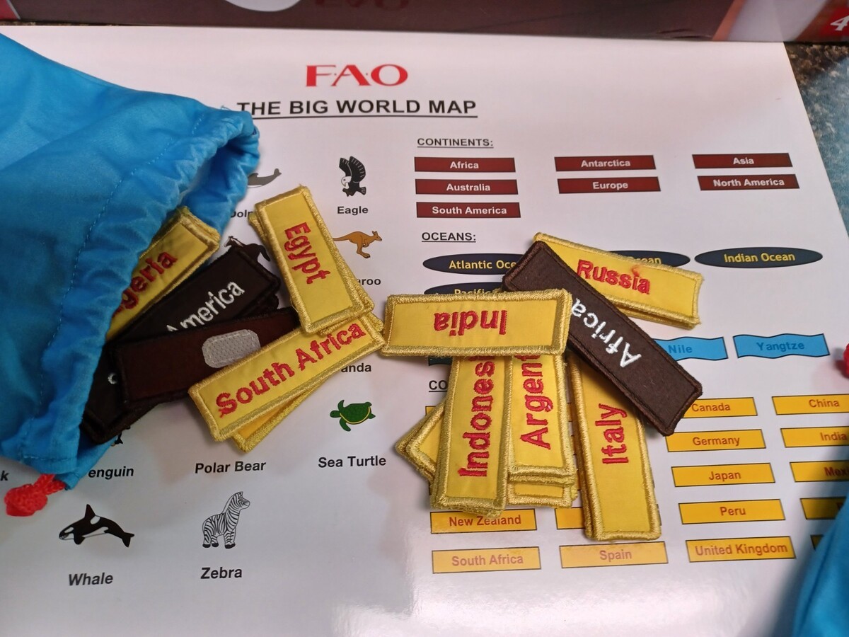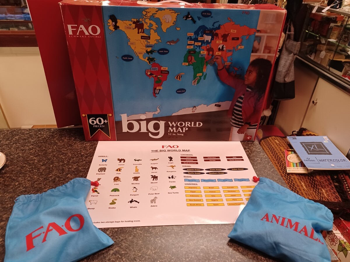 FAO Schwarz Big World Map 52”x35” Hanging Play Map w/ 60 Removable Pcs Complete