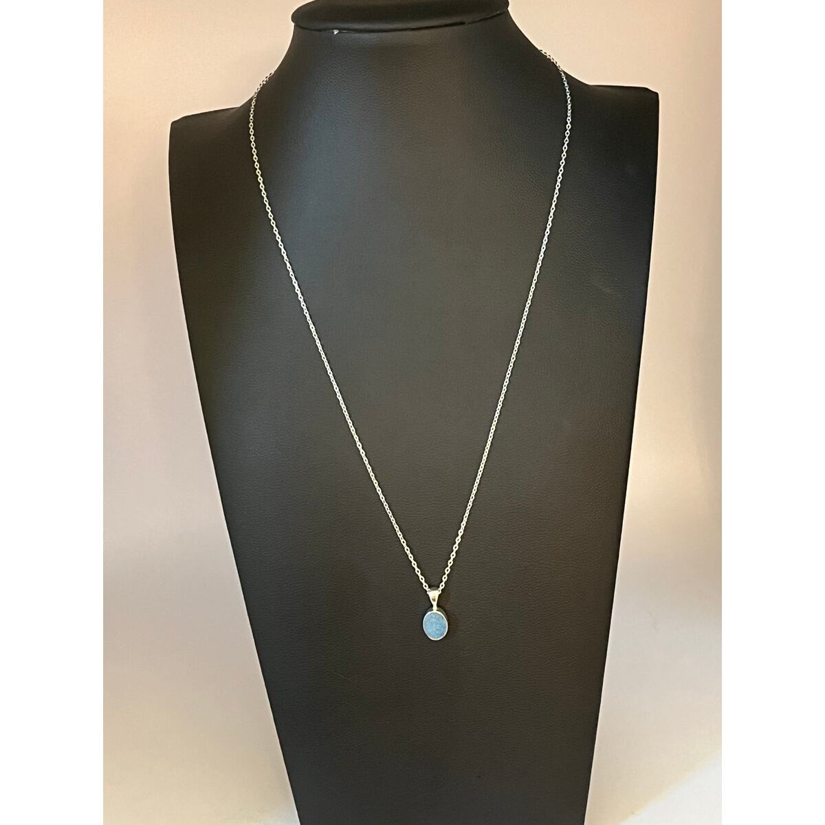 Sterling silver black oval shape Australian boulder opal cabochon pendant and chain necklace. Opal has very nice play of color. Chain length can be worn as 16 inches and 18 inches. Pendant length 1/2 inches with bail. Hallmarked 925. Condition excellent.