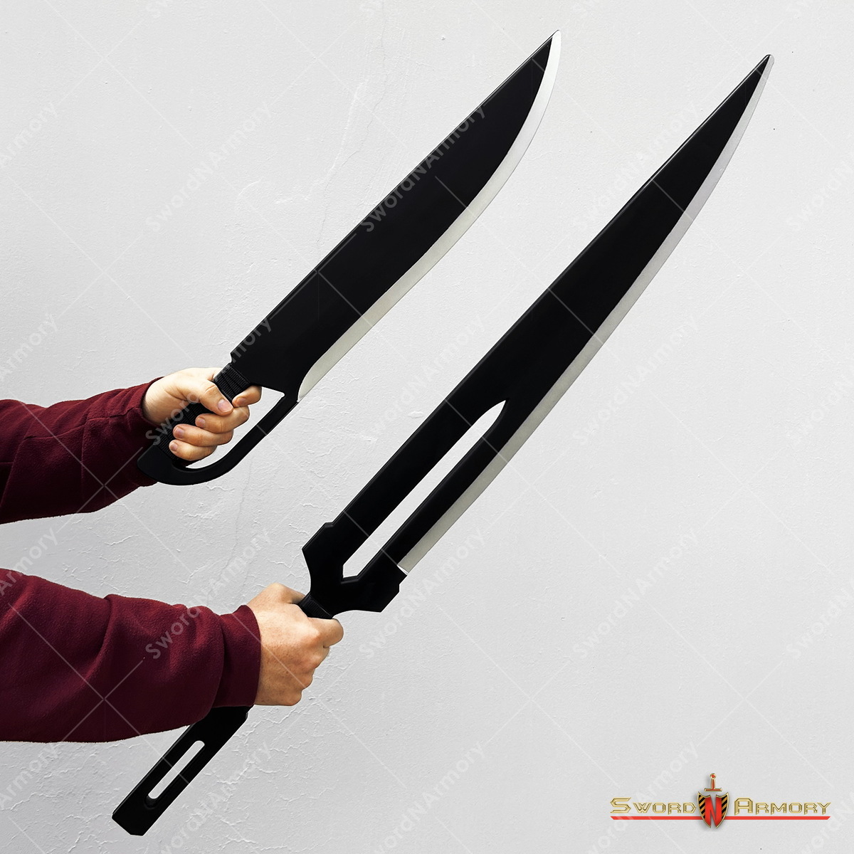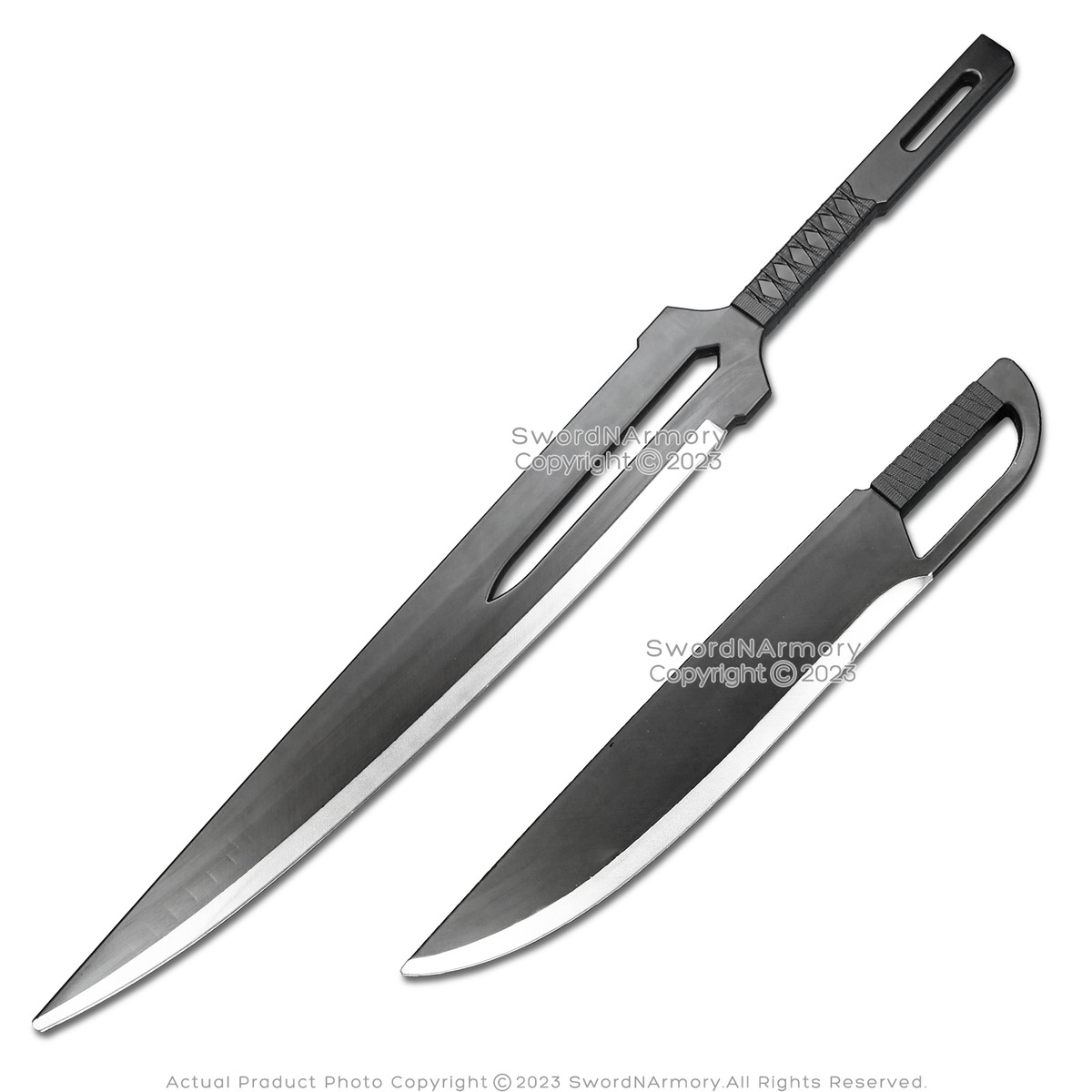 [GETSUGA JUJISHO] The all-black, Khyber design of the larger sword and the trench-knife design of the smaller blade are the perfect complement to each other