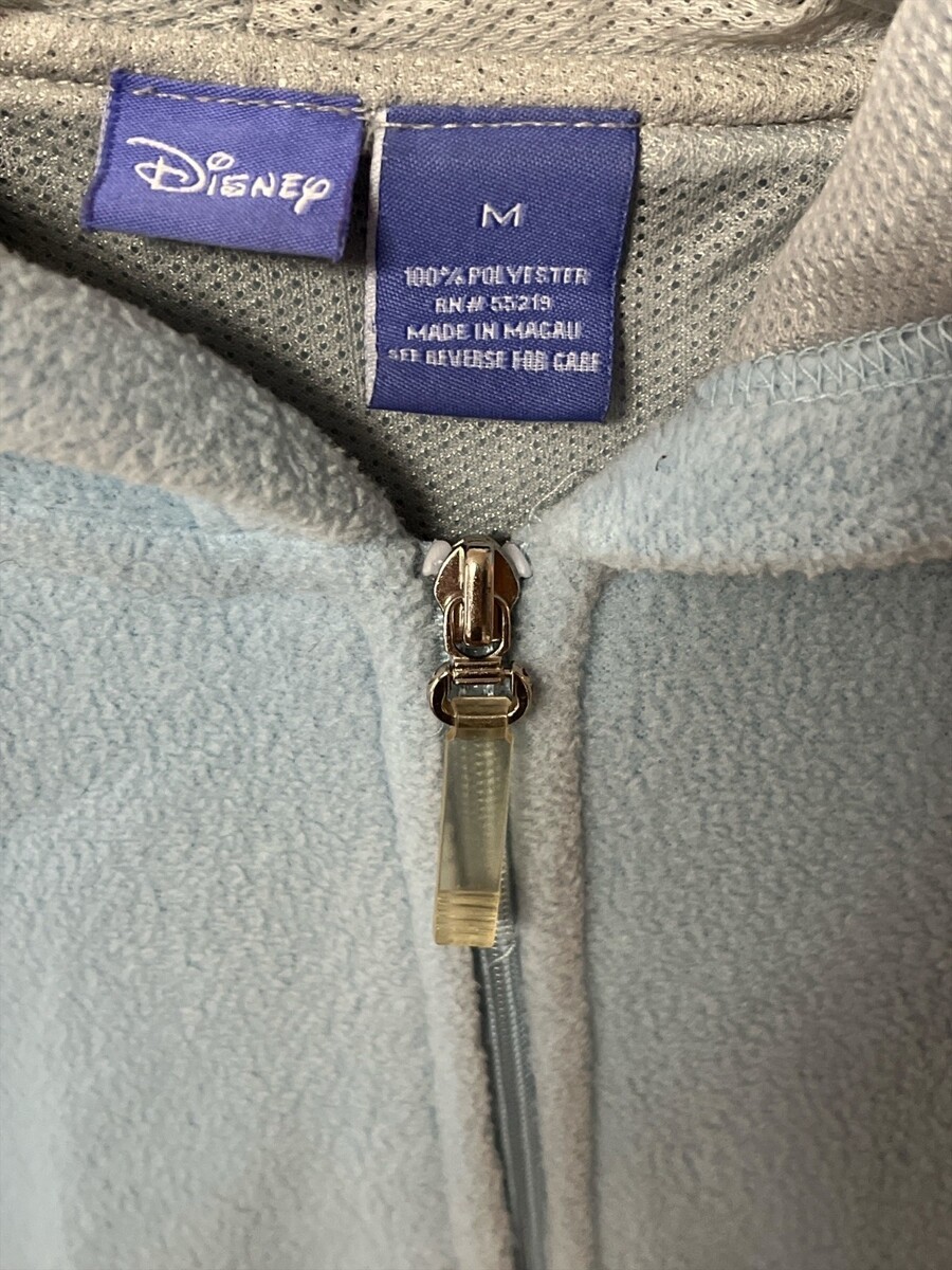 Vintage Disney Eeyore Zip-Up Fleece Hoodie OO Patch Light Blue Size M