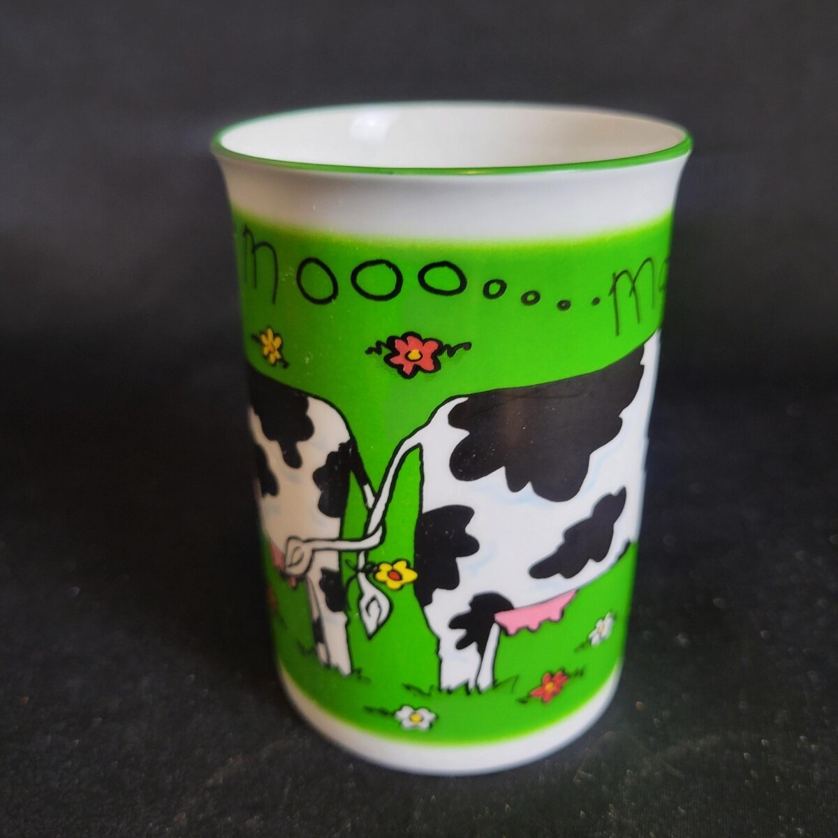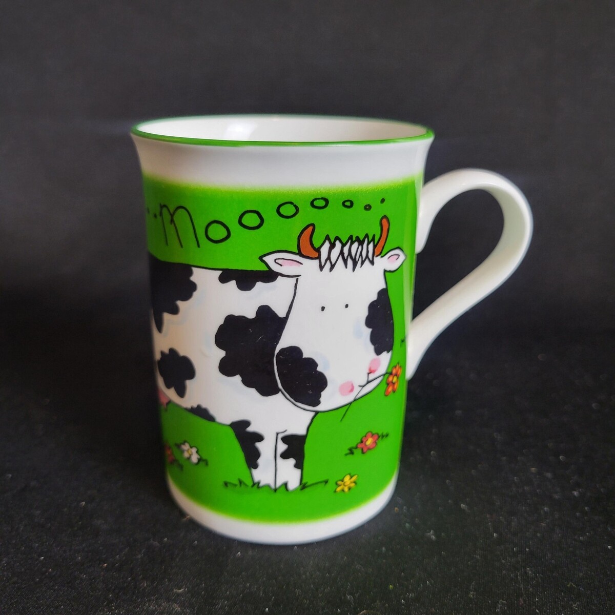 Kirsty Jayne Moo... Cow Fine Bone China Staffordshire England Coffee Mug Green