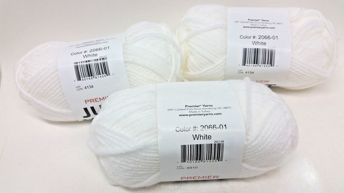 Premier JUST YARN Worsted - Color WHITE - 109 yards Each - Skein - Medium #4 - Lot Of 3