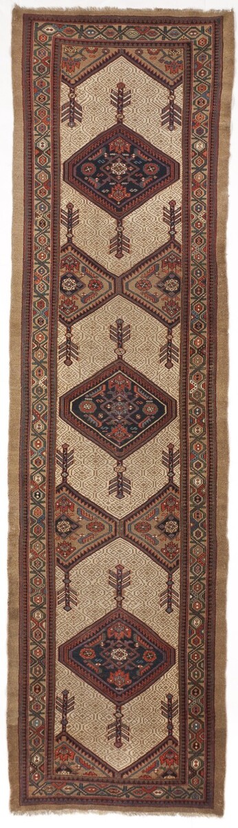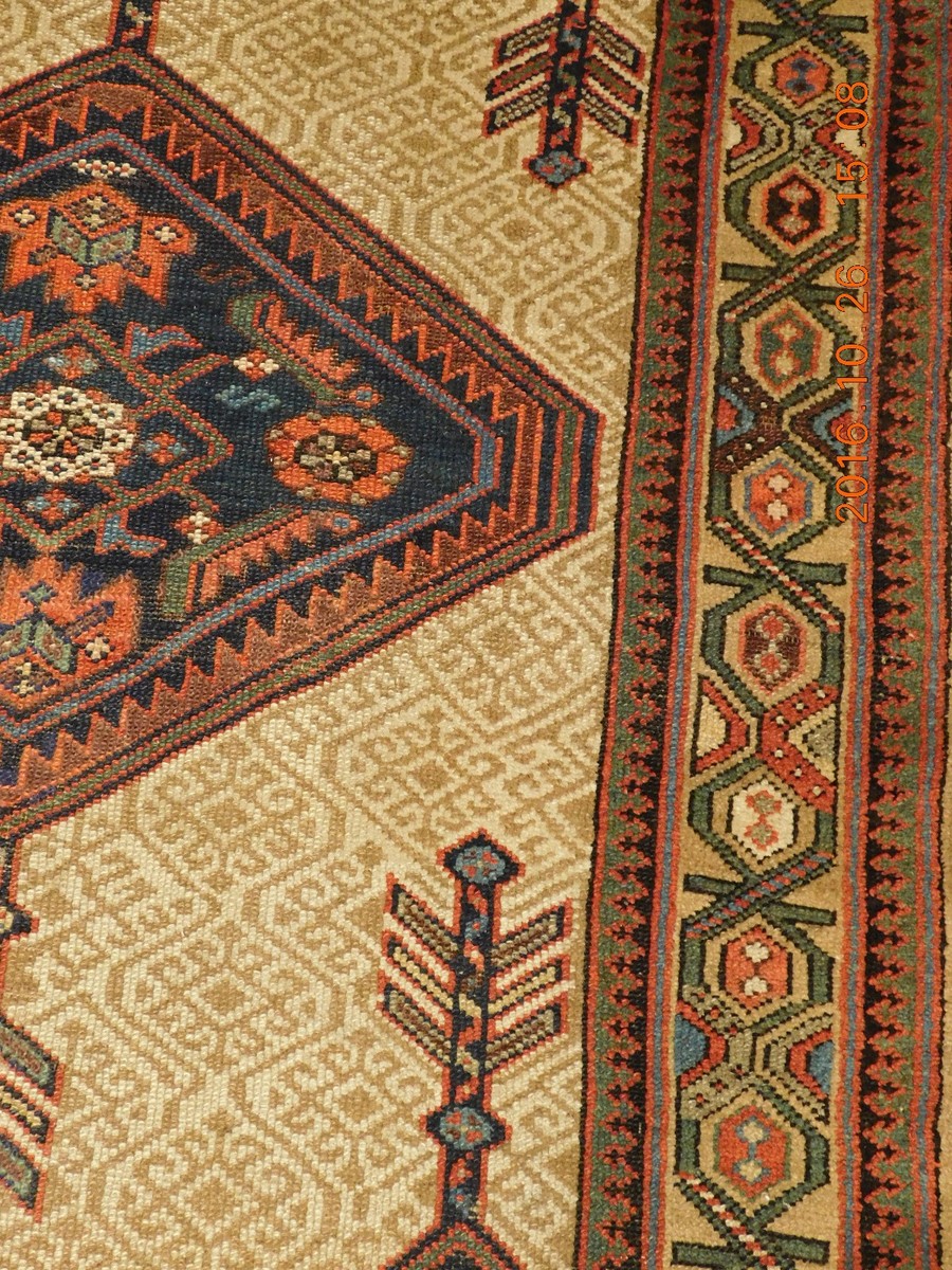 This Antique Hand Knotted Rug measuring 8'10'' x 13'0'' showcases a magnificent central diamond-shaped field filled with an incredibly dense and delicate botanical lattice. The rich color story features deep rust and terracotta tones contrasted by sharp navy blue and luminous ivory accents throughout the intricate floral motifs. Framed by a multi-layered primary border with complex flower-head patterns, the rug demonstrates the pinnacle of traditional weaving and meticulous hand-spun wool artistry. Its grand proportions and authentic age-related patina make it an ideal anchor for a large living room or formal dining space, offering both historic soul and exceptional durability. This piece is a sophisticated decorative investment that perfectly balances old-world formality with a warm, inviting aesthetic.