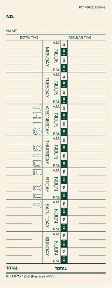 Weekly Employee Time Cards 9x3.5? Manila Payroll Attendance Record 500 Pack