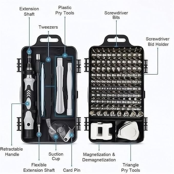 115-in-1 Precision Screwdriver Set with Magnetic Bits for Electronics Repair