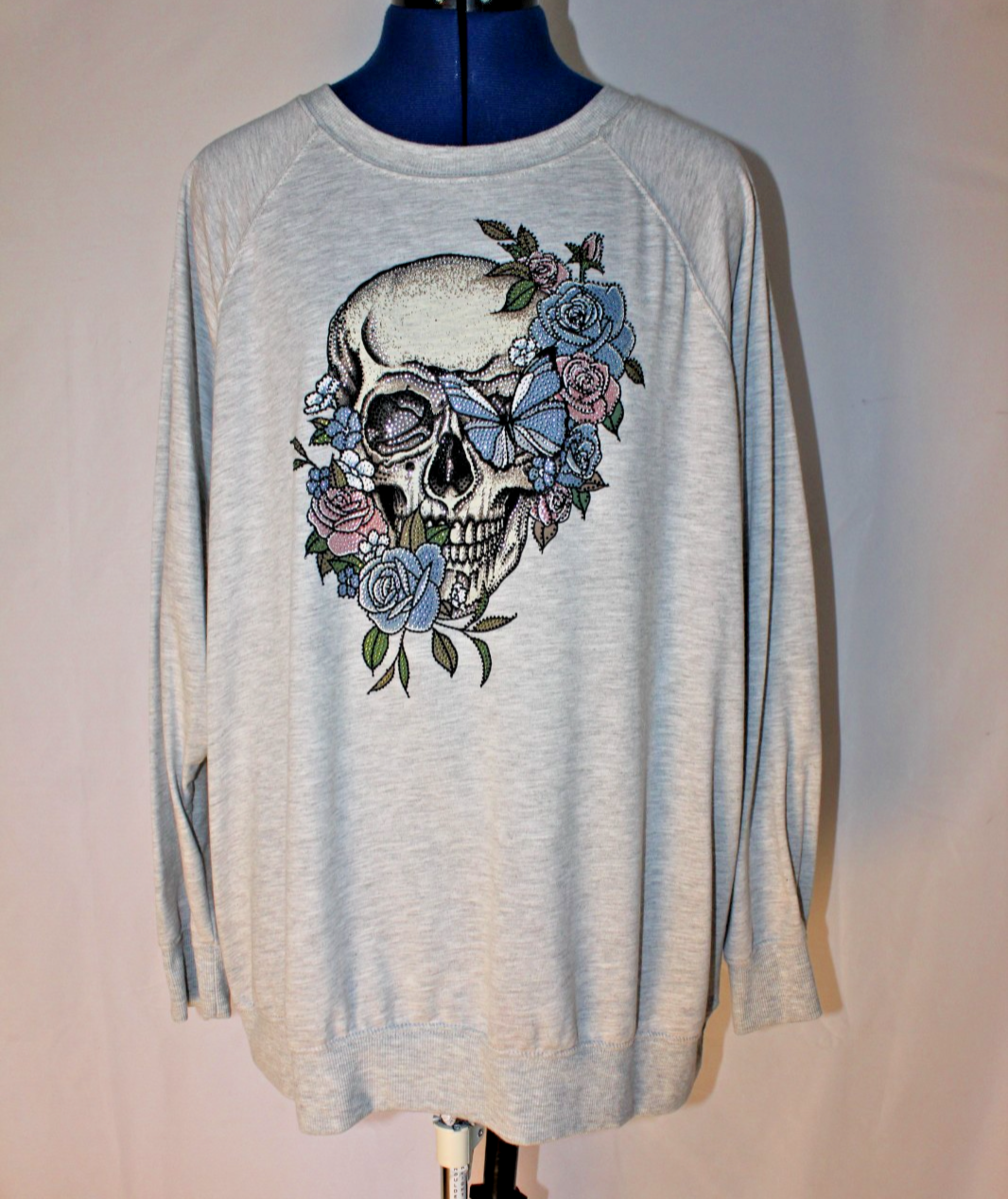 Torrid Size 2 Gray Embellished Skull French Terry Lightweight Sweatshirt
