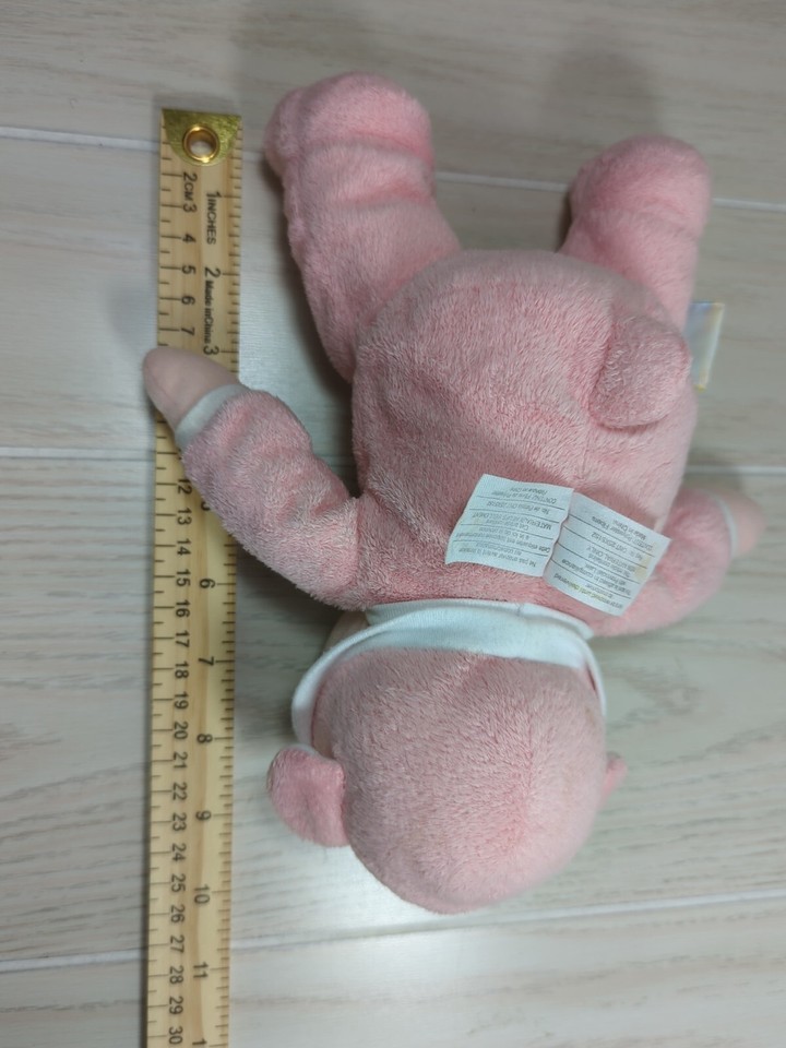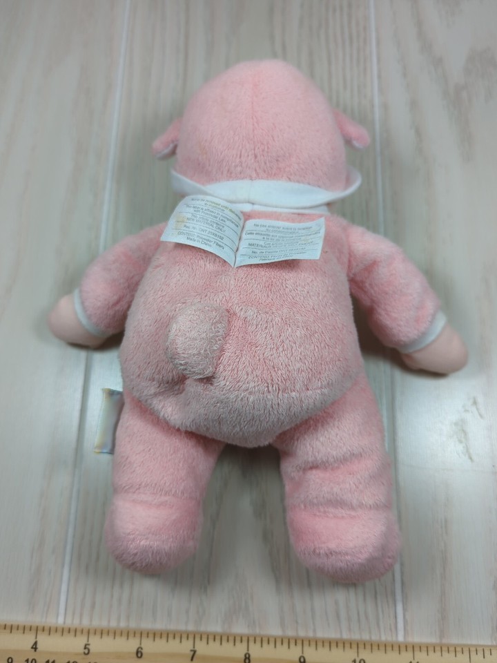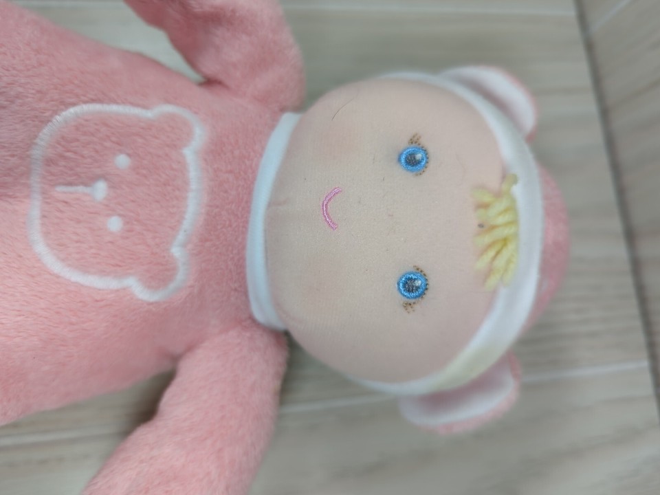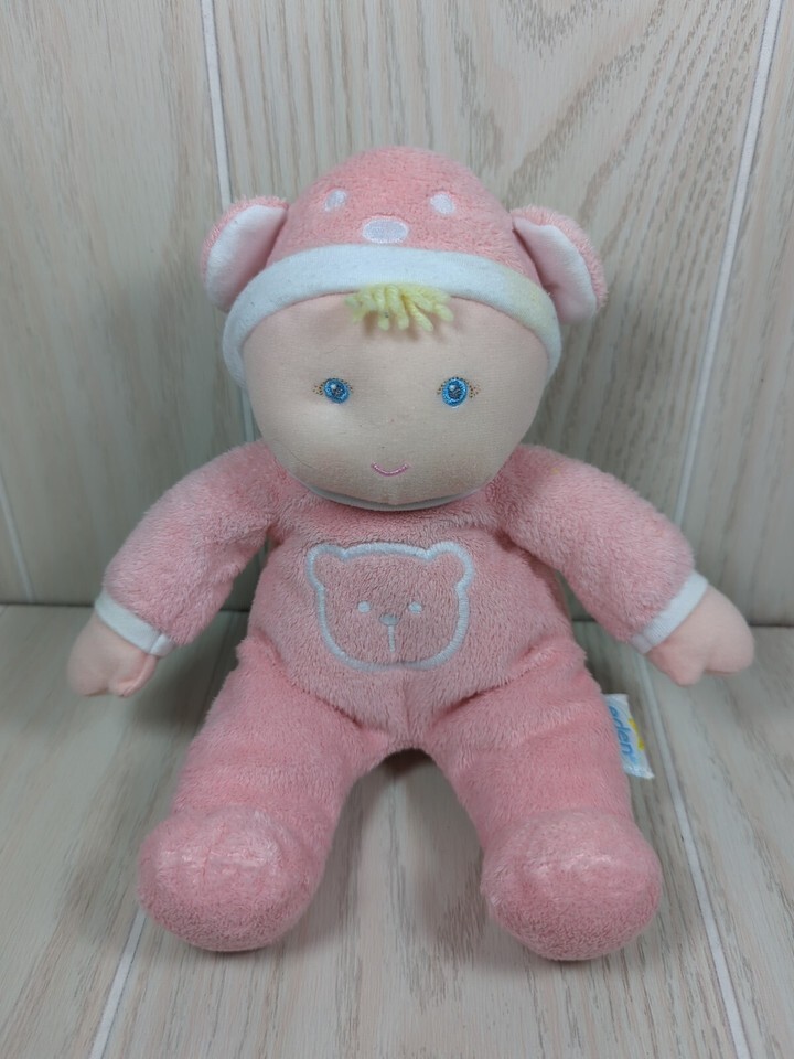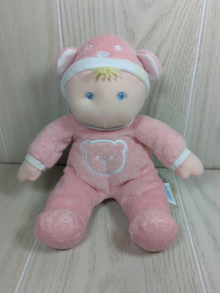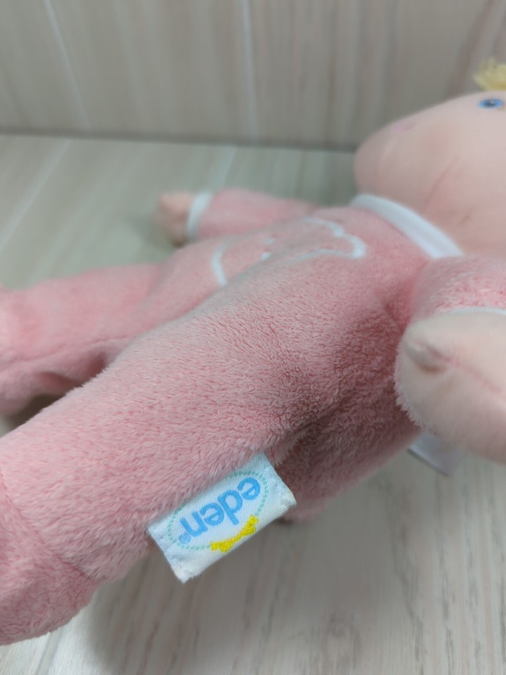 Eden soft plush pink baby doll blonde yarn hair teddy bear ears hat pjs rattle