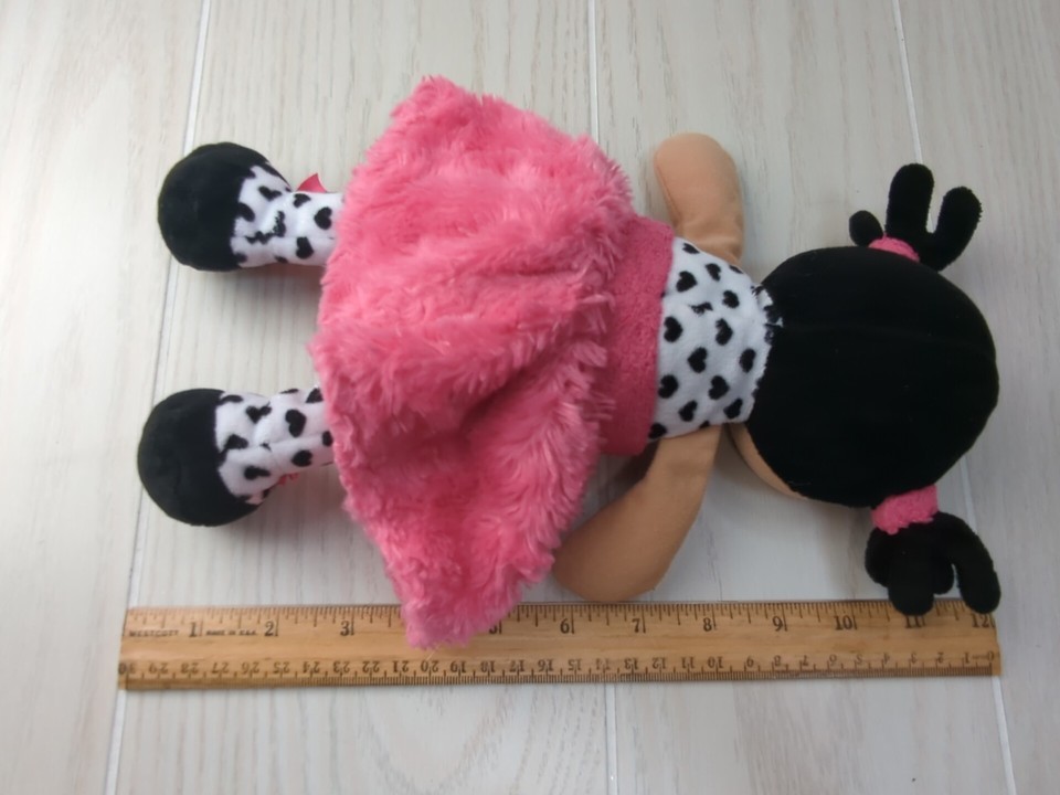 Baby Starters Plush Baby Doll Pink swirl dress black hearts hair tan brown skin