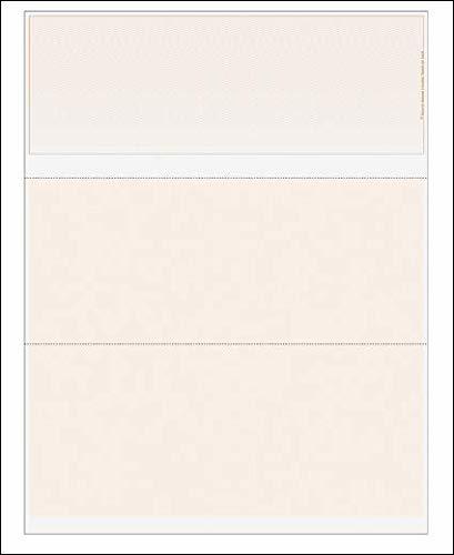 Product description: Use this high quality blank check stock with your accounting software, laser printer and MICR toner to produce complete checks. Each sheet contains one top check and two stubs. These checks DO NOT include a signature line. Security Features: Artificial Watermark, Microprint, Warning Box, Security Screen, Padlock Icon