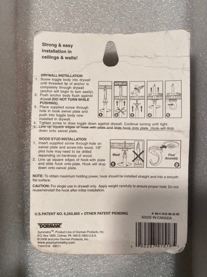The new self-drilling swivel hook is white and it says comes with everything and all you need is a screwdriver
