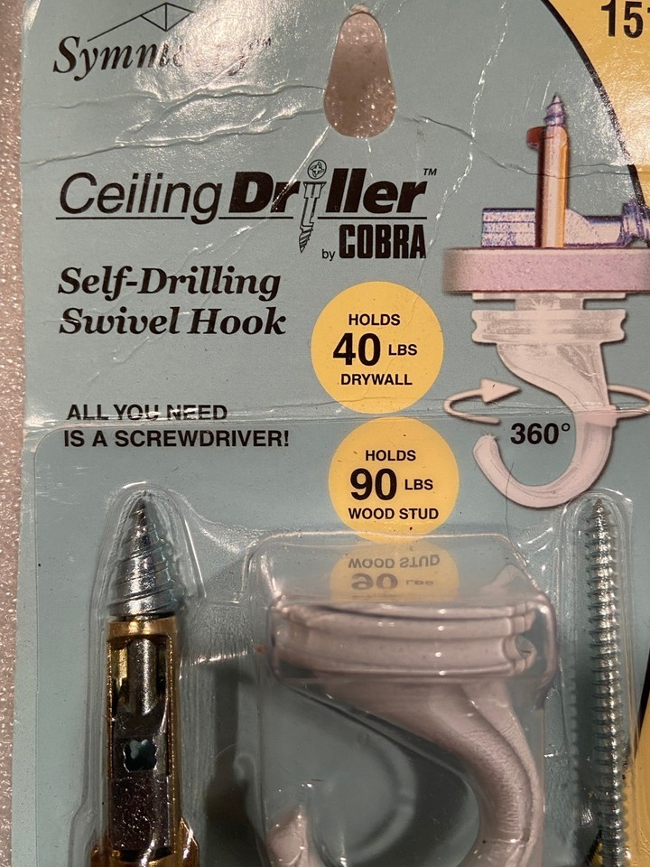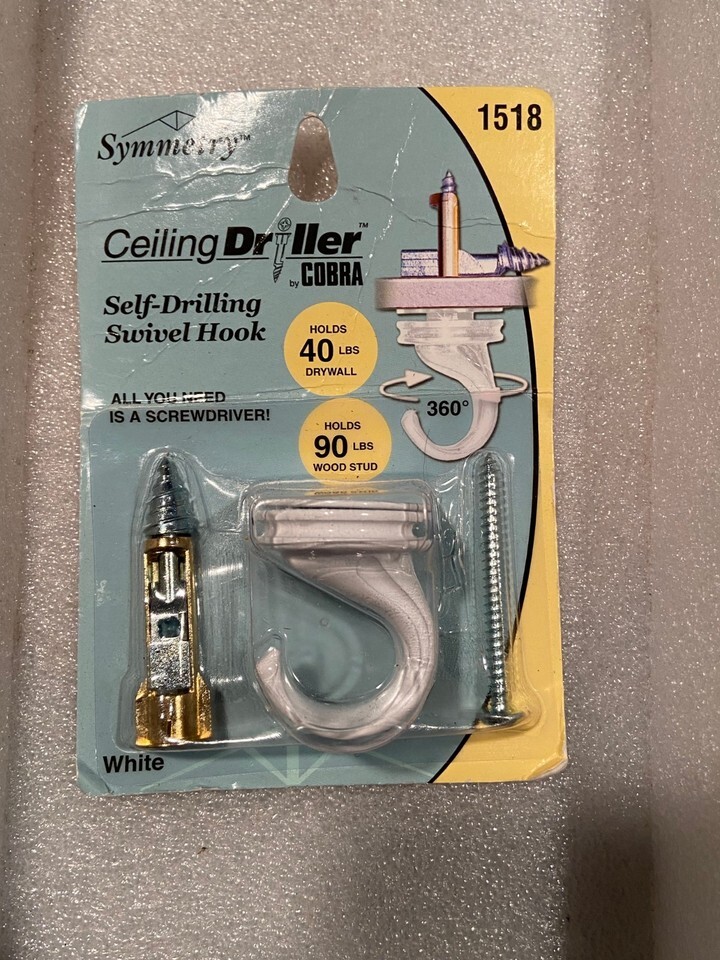 Cobra Ceiling Driller White Self-Drilling Swivel Hook Model#1518 *NEW* n2