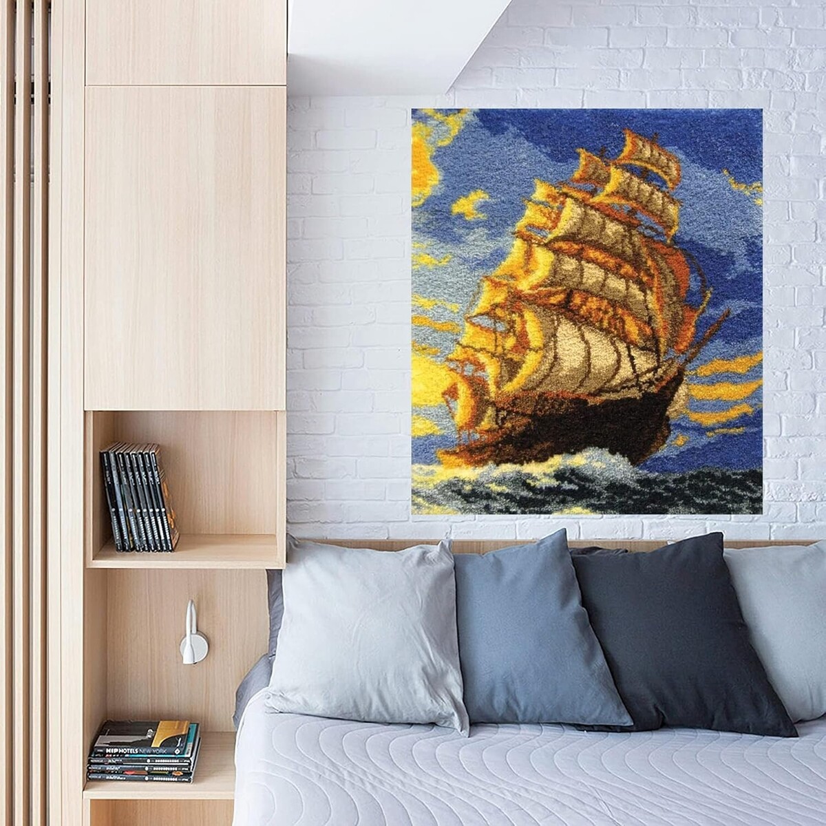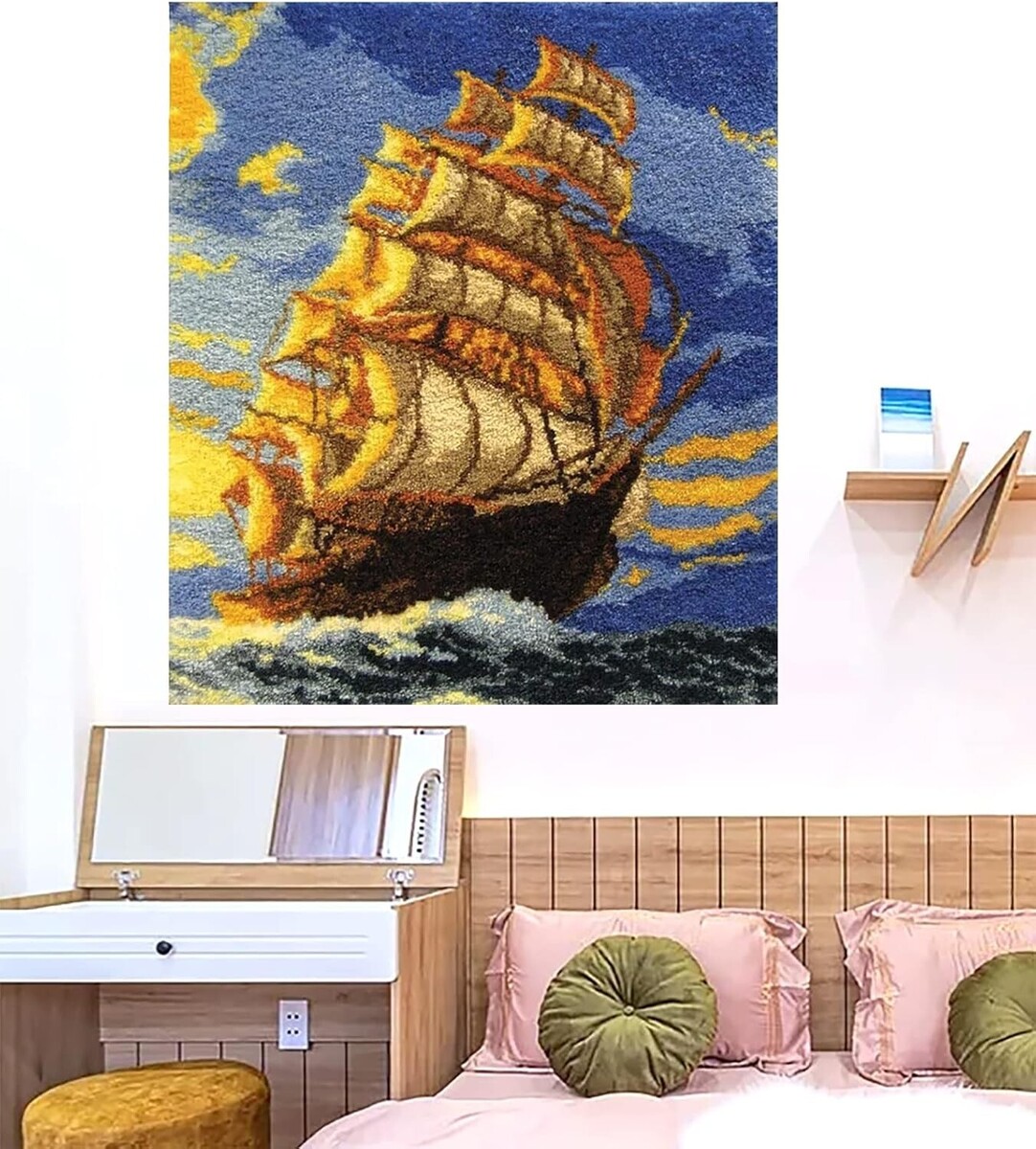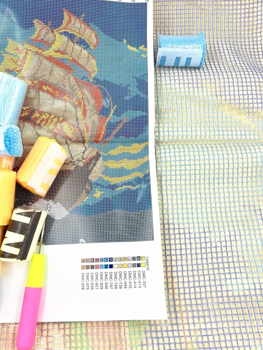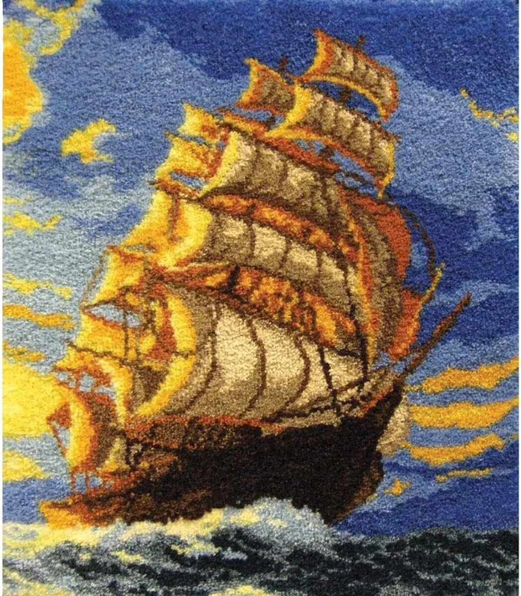 Latch Hook Kits Rug, 3D Pattern Printed Canvas Crochet Needlework Crafts Floor DIY Latch Kits for Adults/KidsSmooth Sailing, 109X94CM
