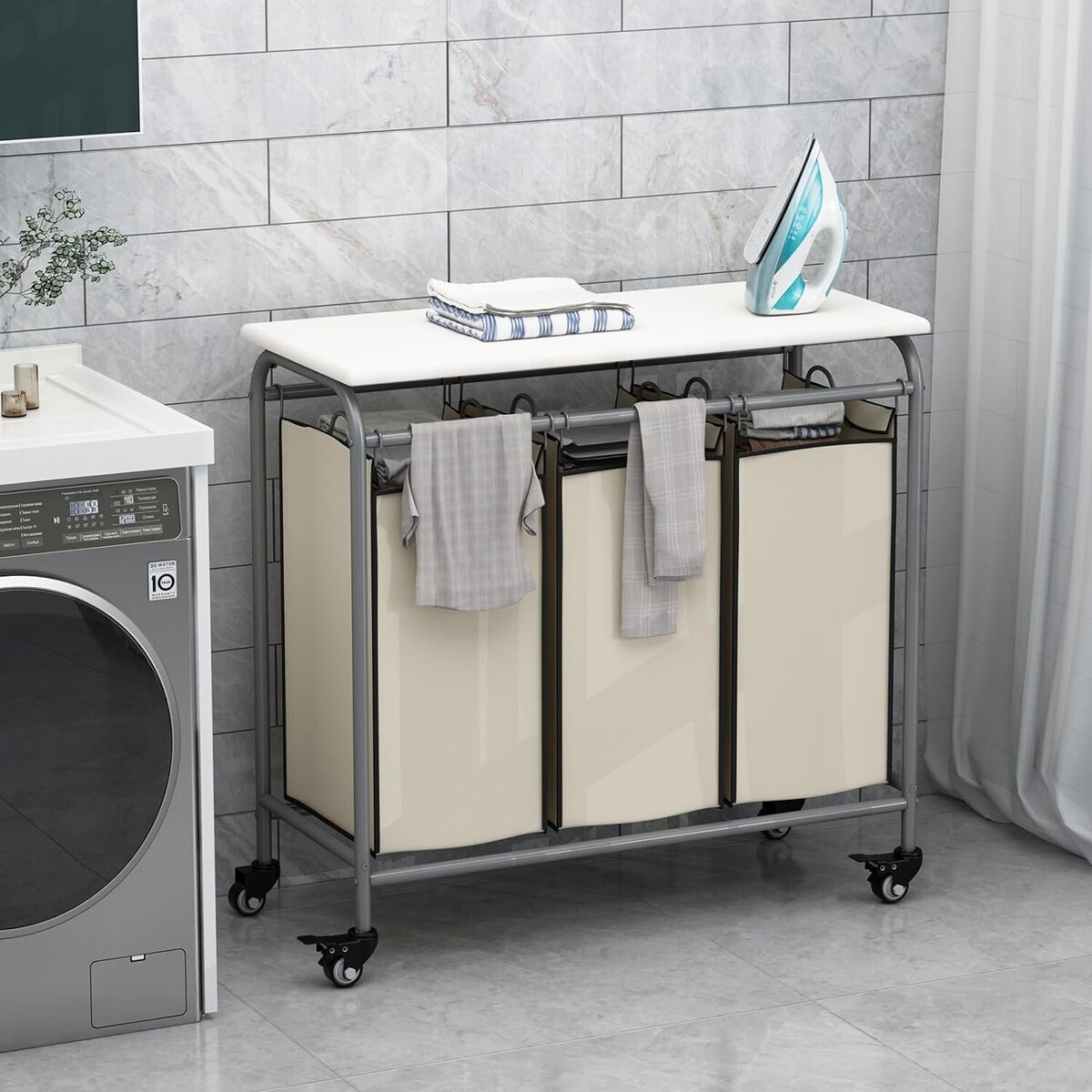 Heavy-Duty Rolling Laundry Hamper Cart with Removable Bags & Folding Board