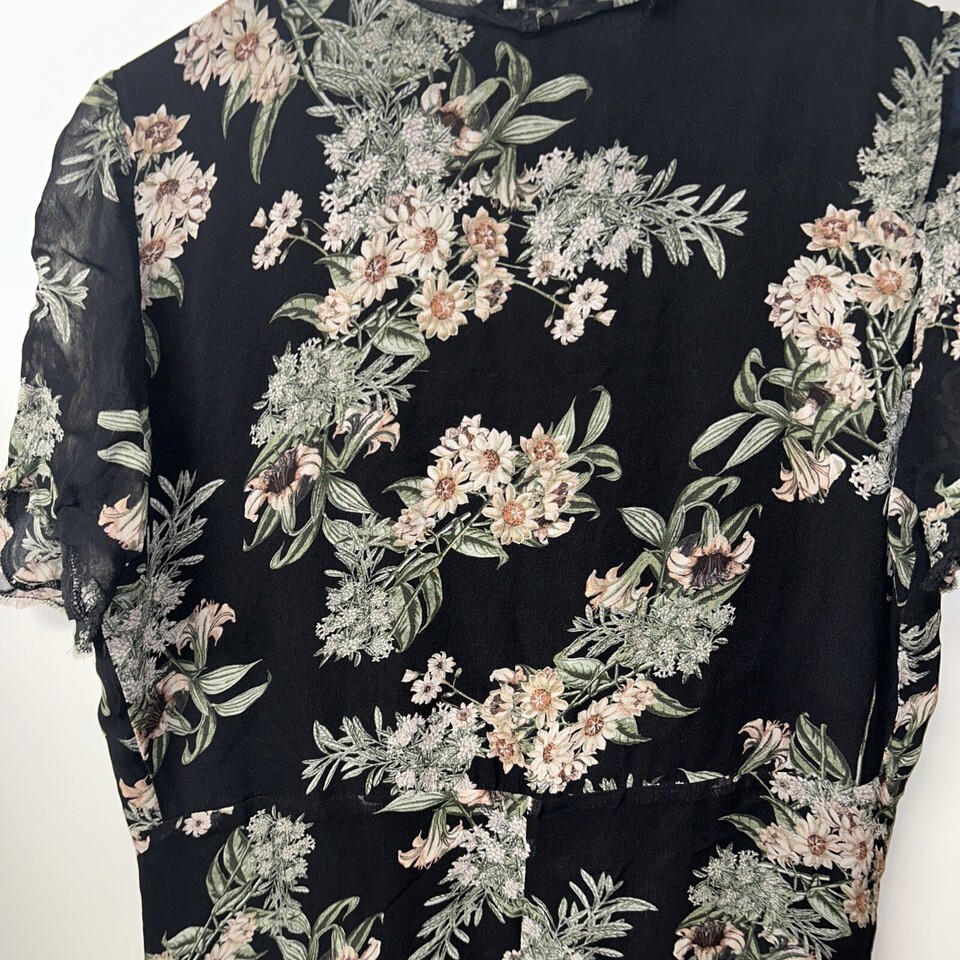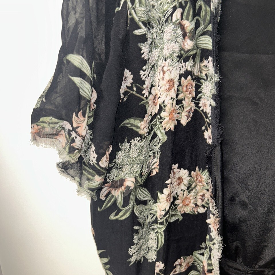 Lucky Brand Floral Maxi Wrap Dress Womens Size Large Flowers Black