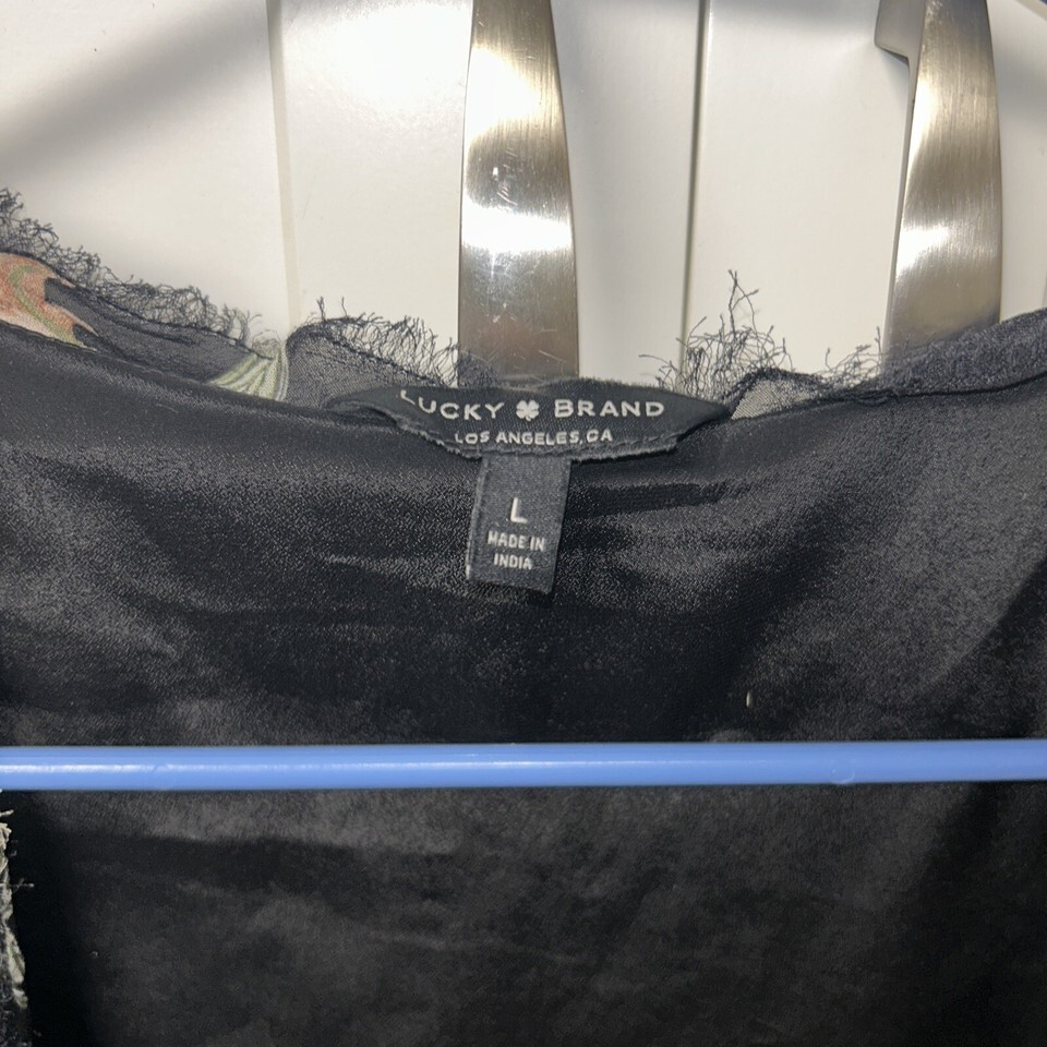 Lucky Brand Floral Maxi Wrap Dress Womens Size Large Flowers Black. Condition is Pre-owned - Good. Shipped with USPS Ground Advantage.