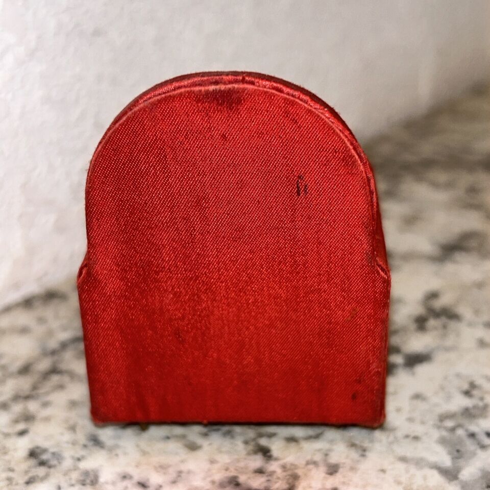 VINTAGE MCM / HOLLYWOOD STYLE MINIATURE DOOLHOUSE CLUB CHAIR RED SILK BRASS D3. Condition is Used. Shipped with USPS Ground Advantage.