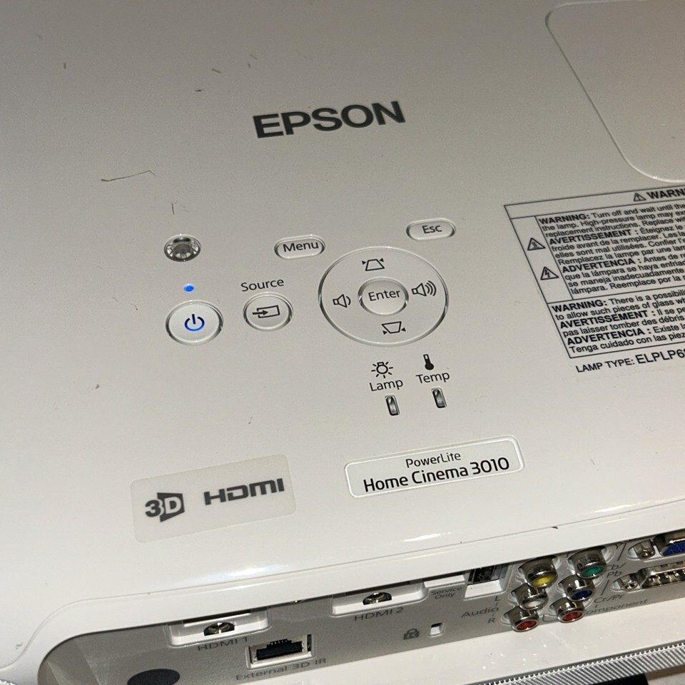Epson PowerLite Home Cinema 3010 3LCD Projector Lamp With Cord & Remote TESTED