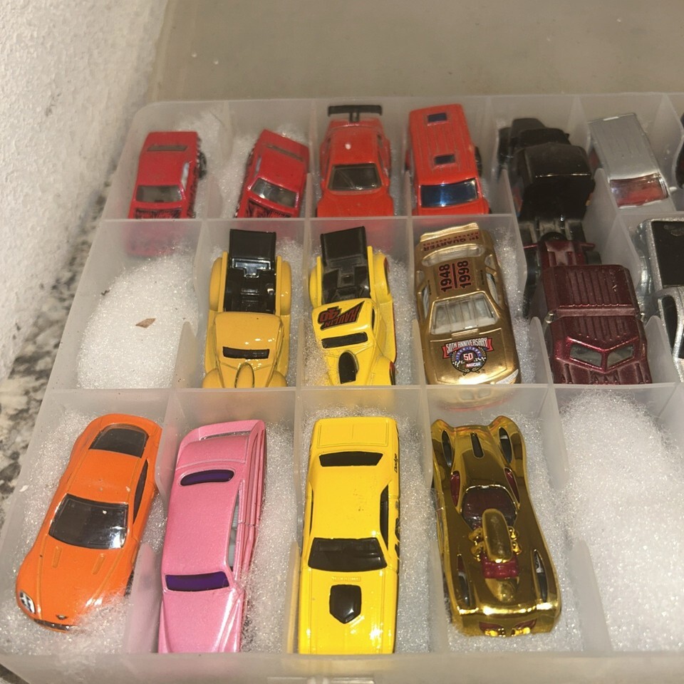 Hat Wheel Lot Of 38 Cars With Clear Carrying Case Some Rare Nice Cars. Condition is Used. Shipped with USPS Ground Advantage.