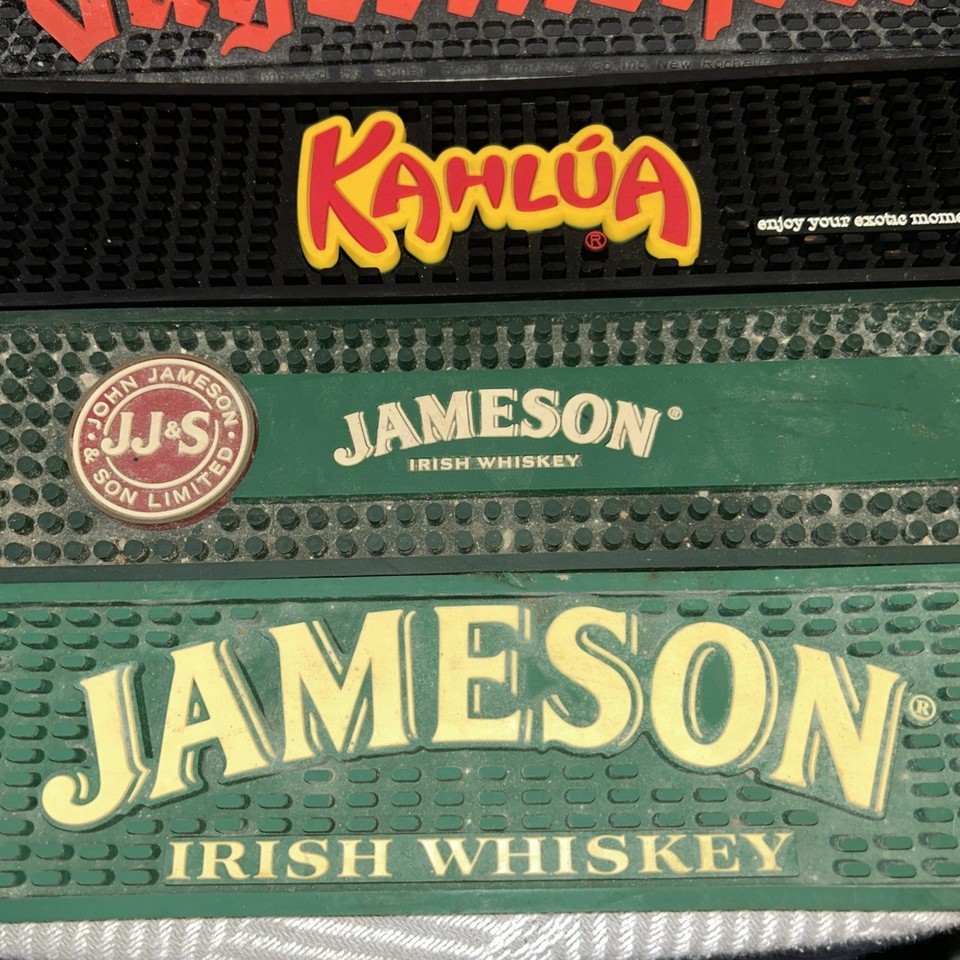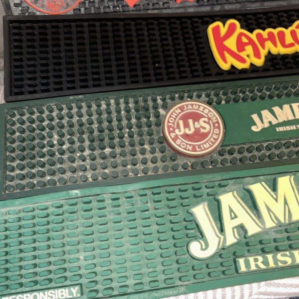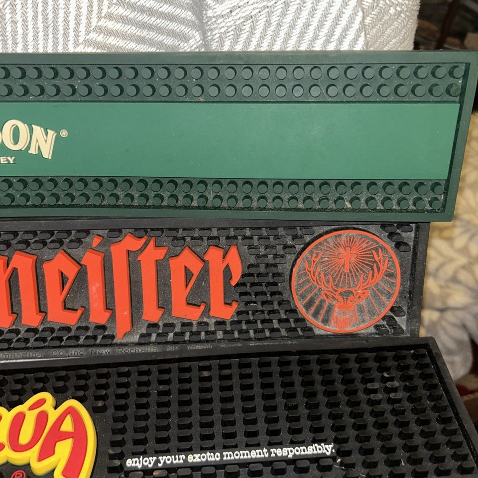 Lot of 5 Bar Mats Wet Spill Runner Drink Pour Pad Rubber Jameson Kahlua Jager. Shipped with USPS Ground Advantage.