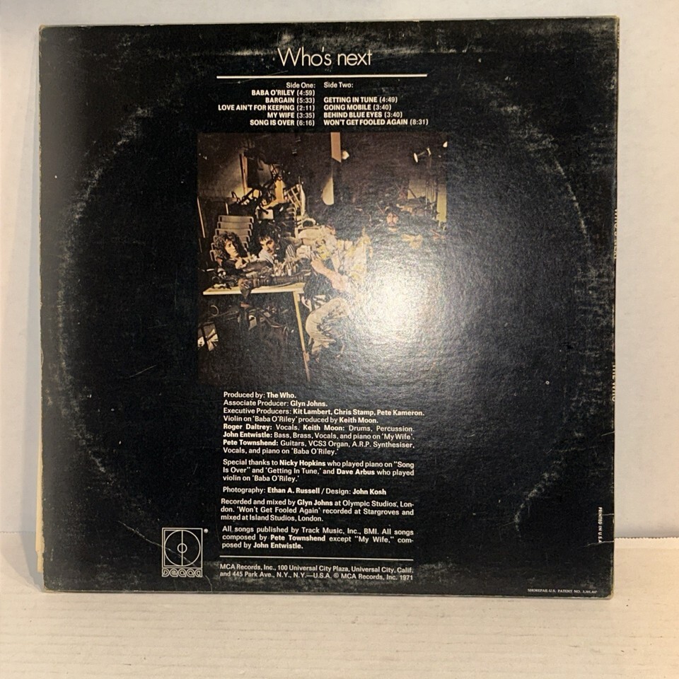 The Who Who's Next 1971 Vinyl Album 33 RPM 12" Classic Rock