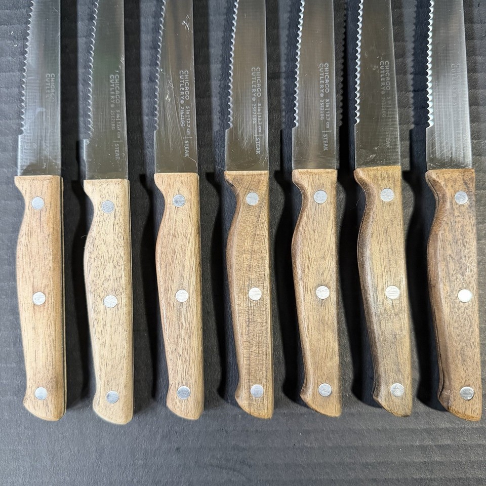 Set of 7 Chicago Cutlery USA Walnut Handle Steak Knives