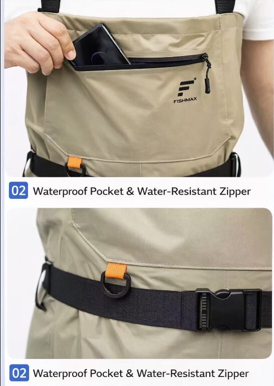 The lightweight yet reinforced fabric provides reliable protection while allowing free movement during long fishing sessions. A waterproof chest pocket with a water-resistant zipper keeps essentials safe and dry, while the integrated hand pockets offer added convenience in cold or windy conditions.