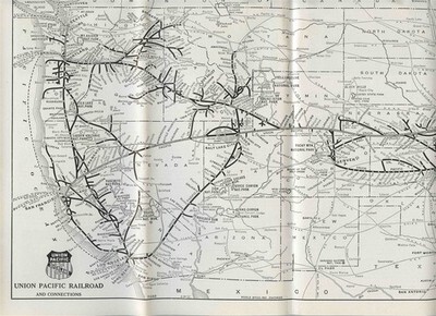 A 94 page Union Pacific Railroad booklet filled with photos, railroad information, cities along the rout photos and information, large route amp and much more. Dated 1941.
