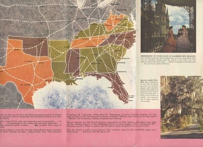 A full color 8 panel fold out brochure. See the Romantic South by Greyhound Scenicruiser Service Brochure . MAny photos, travel information route map and more.