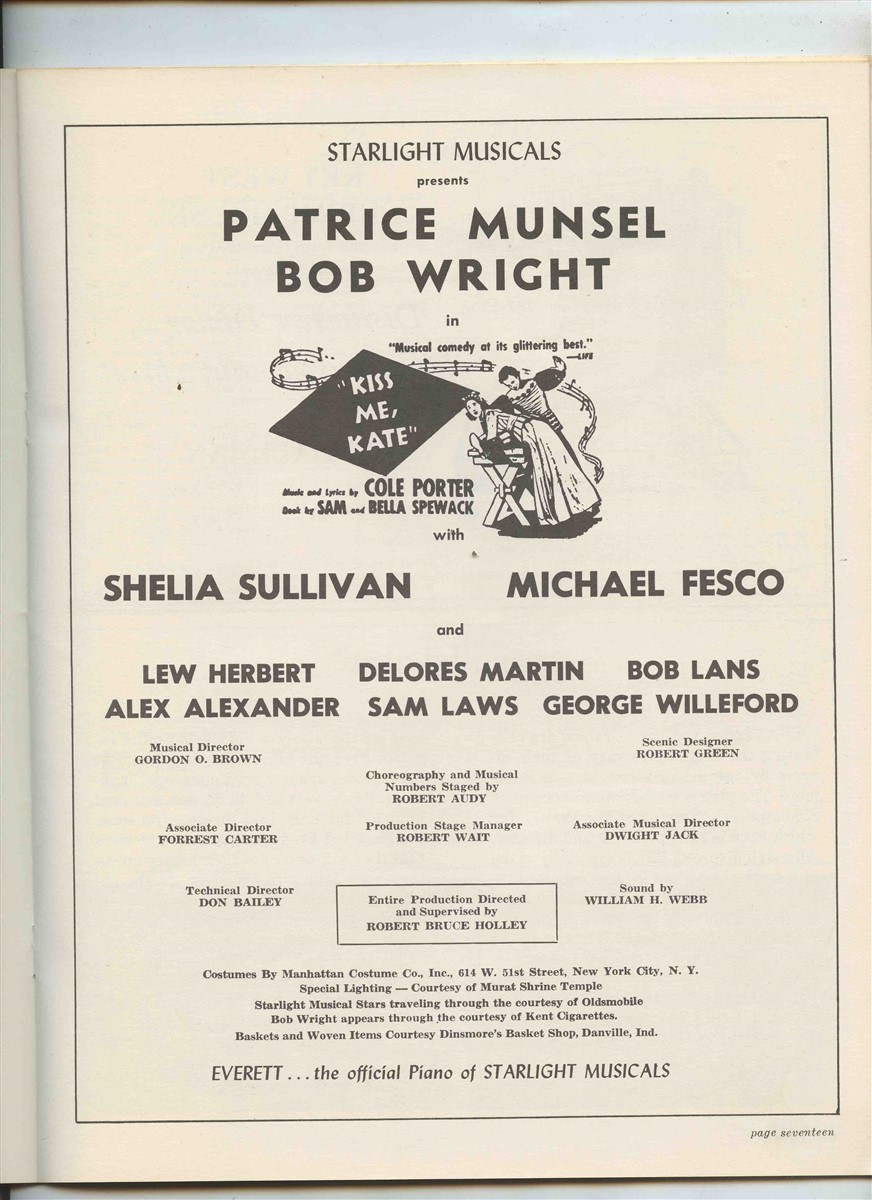 Kiss Me Kate Program Starlight Musicals Indianapolis IN 1966 Patrice Munsel