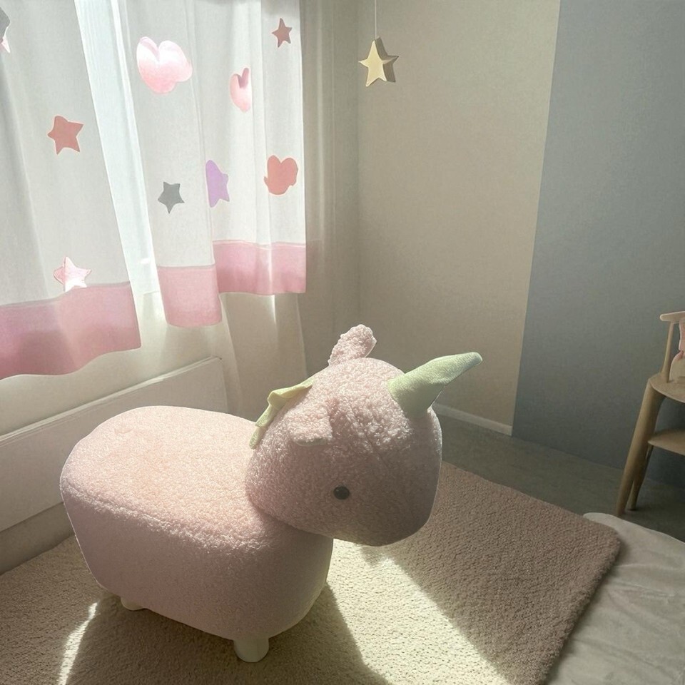 Pink Plush Unicorn Ottoman Footrest Stool – Kids Room Decor Toy Seat – New