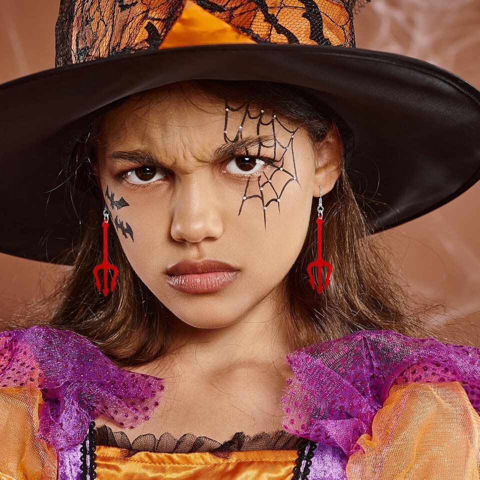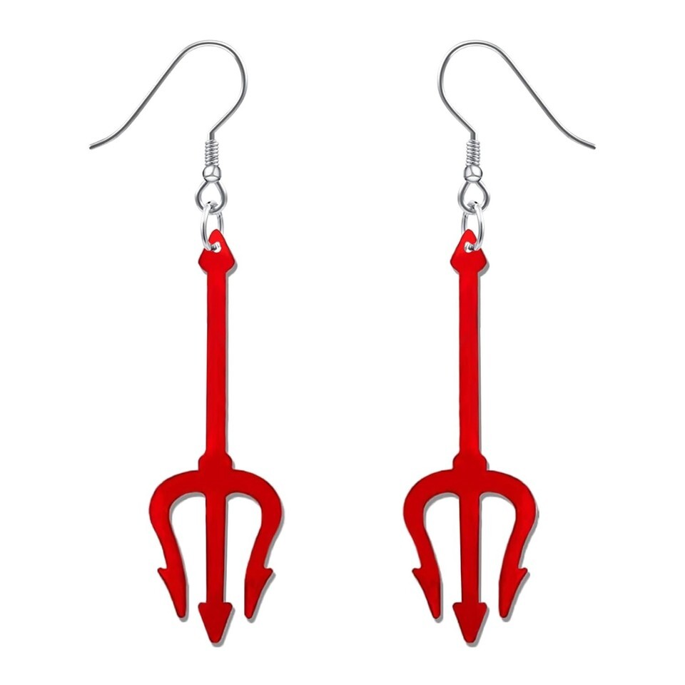 Devil Earrings Halloween Dangle Red Pitchfork Costume Jewelry Fun Gift for Women