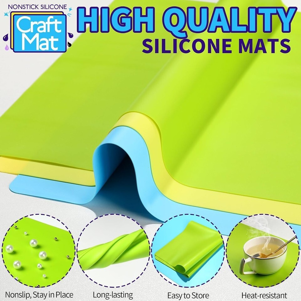 3 Silicone Craft Mats (Blue, Yellow, Green)