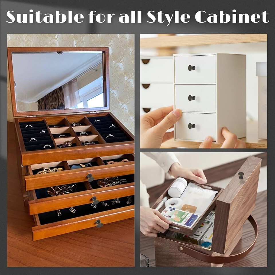 ?Easy to Install-The mini cabinet knobs come with screws and are designed for easy installation. Simply place the dresser knobs in the desired position, insert the screws, and tighten with a screwdriver. It's effortless to quickly install a cabinet handle on a cabinet, dresser, or jewelry box. These pull knobs are easy to grip and operate.