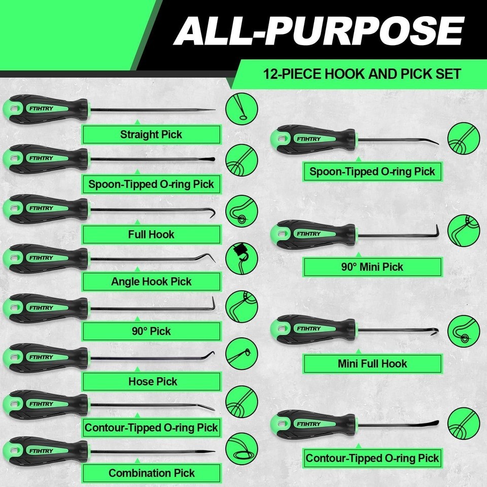 12-Piece Pick and Hook Tools Set, Pick Tool Set Car Auto Oil Seal/O-Ring Seal Ga