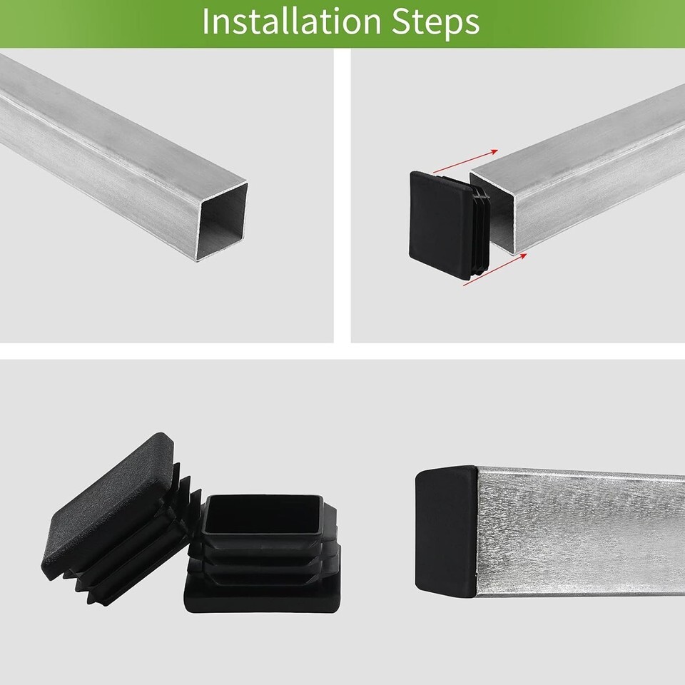??Multipurpose? - The tubing insert cover is widely used to chair legs, bench feet, table legs, bar stool foot, and fences/fencing railing posts, furniture end covers, fitness equipment end covers, gate rail post covers, trailer frame ends, pole pipe rod caps, metal bike rack fittings, wrought iron steel finishing plugs, or any sqaure opening.
