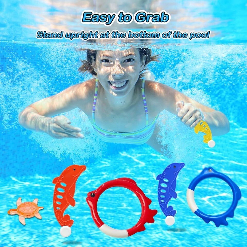 Encourage Swimming Learning through Fun Diving Games - Toss the dive toys into pool, watch them sink underwater, and start the fun treasure hunting pool games! Perfect way to improve children's diving and swimming skills while have fun with friends and families
