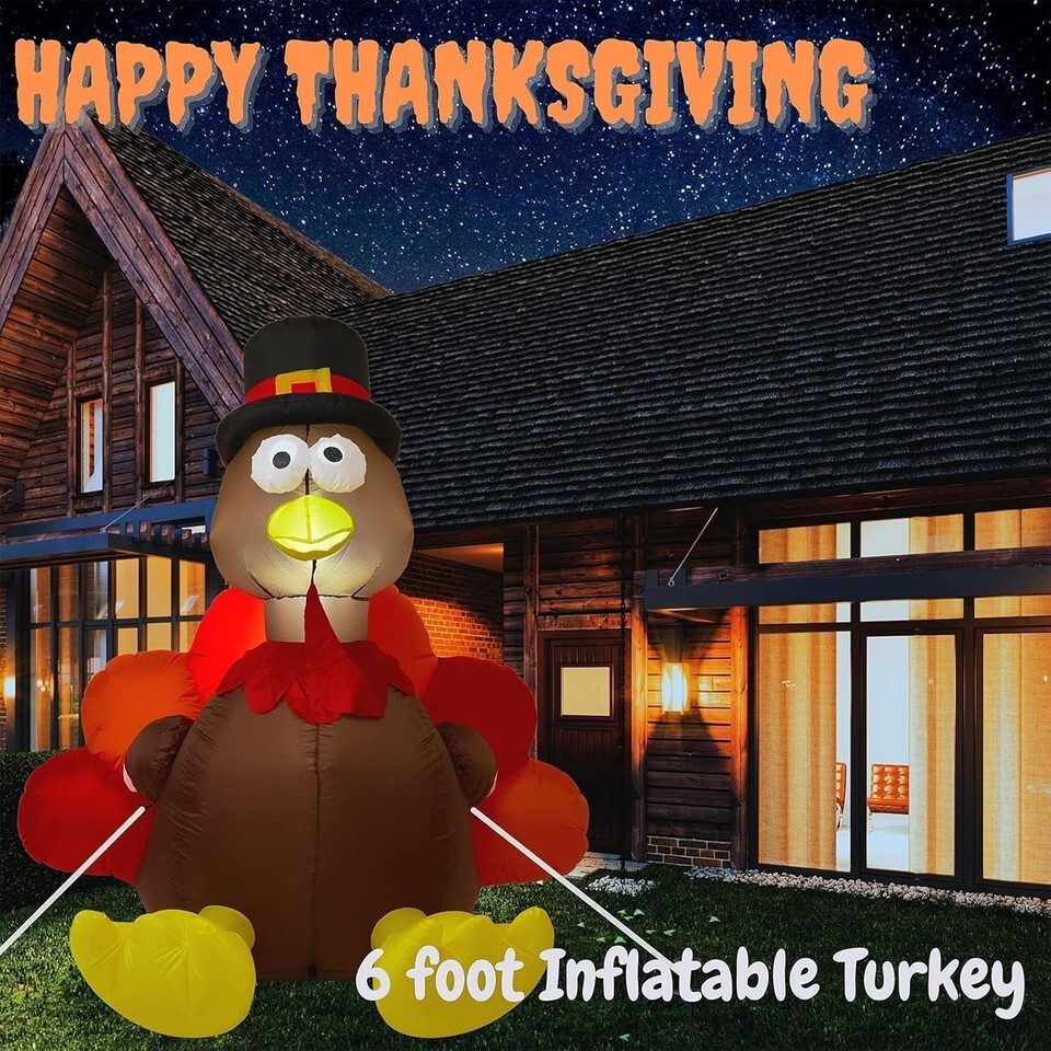 ?? ?Weatherproof Material Stable Design?Our inflatable 6 ft Thanksgiving Turkey made of waterproof polyester fabric, thick and durable. Built-in super bright led light, making it look perfect every Holiday night! Create a fun, memorable scene in your home or on your lawn during the holiday season.