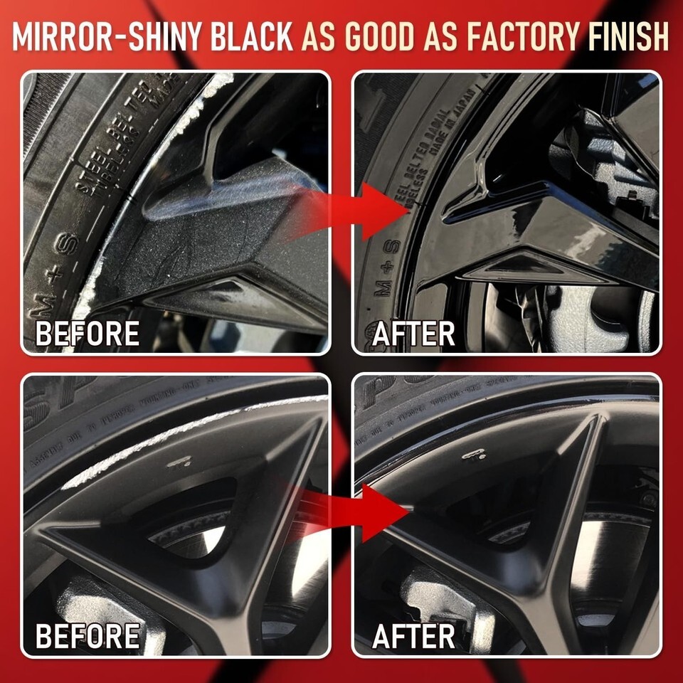 Fast Repairs Wheel Scratches Curb Rash at Home: All-in-one kit; specially designed for repairing scratches, curb rash on alloy, steel wheels with OEM Car Wheel Curb Rash Repair kit, instantly restoring black gloss original wheel appearance at home
