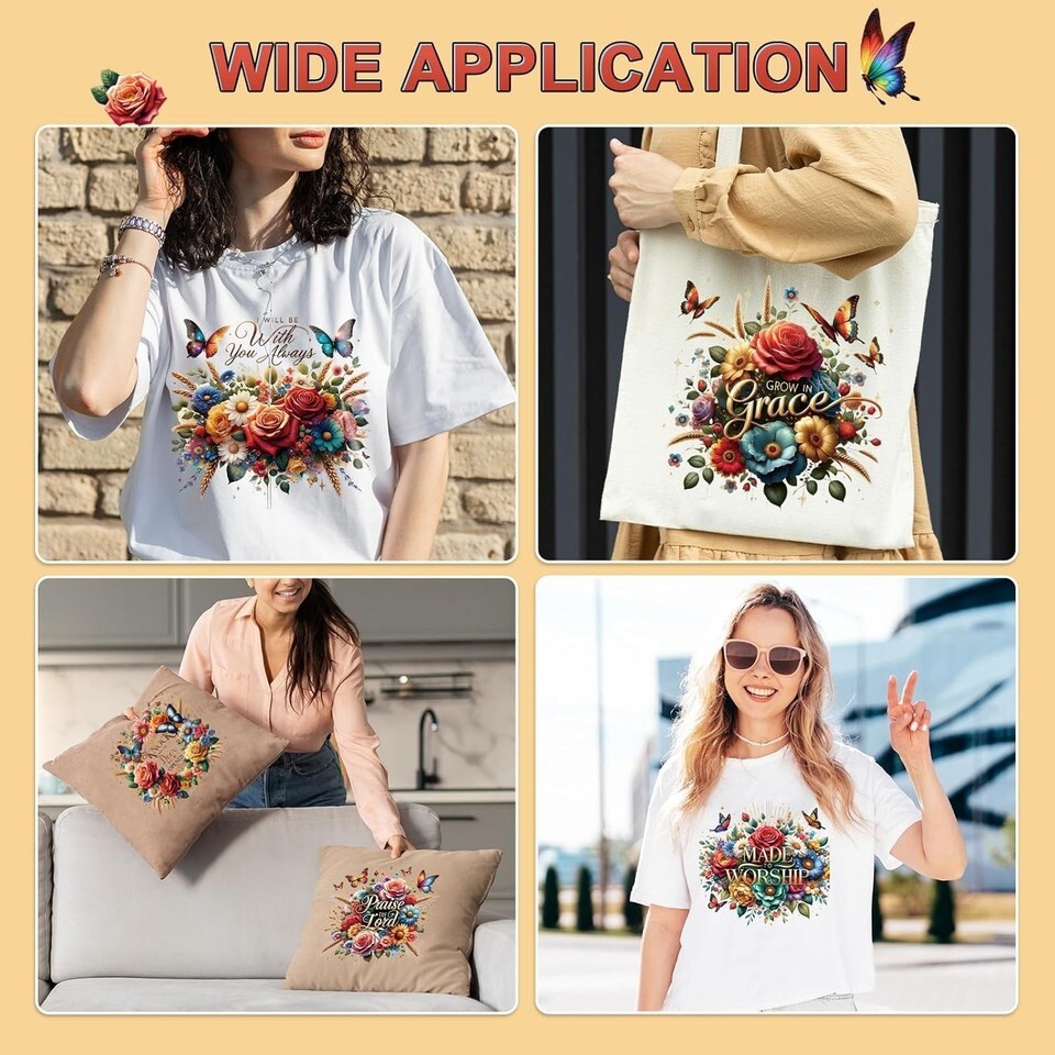Easy to Use: Each transfer comes with clear instructions; Just use home iron or heat press apply at 338F (150C) for