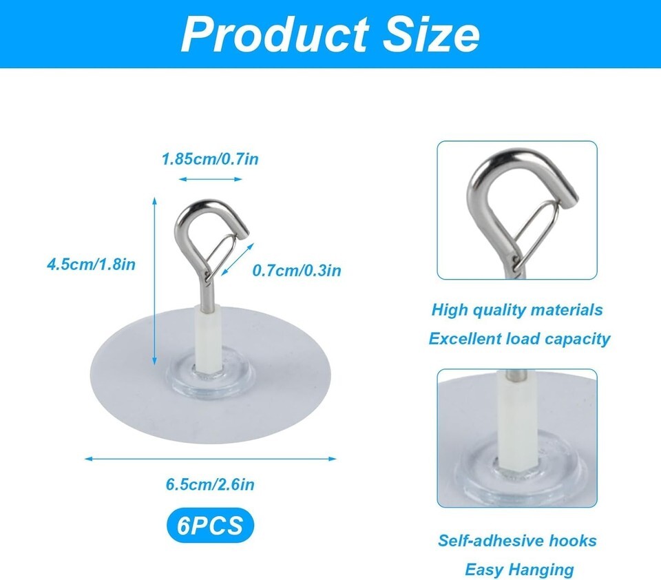 Package includes: a total of 6 pcs sticky hooks for hanging, suitable for offices, bedrooms, balconies, bathrooms and other places, making your space more beautiful and orderly