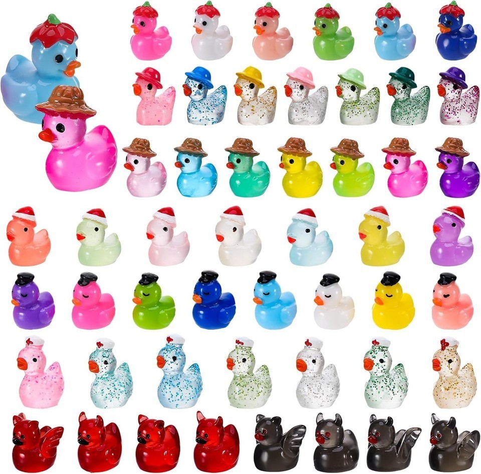 50 Pcs Mini Resin Ducks Different Mini Luminous Ducks with Hat Miniature Animal