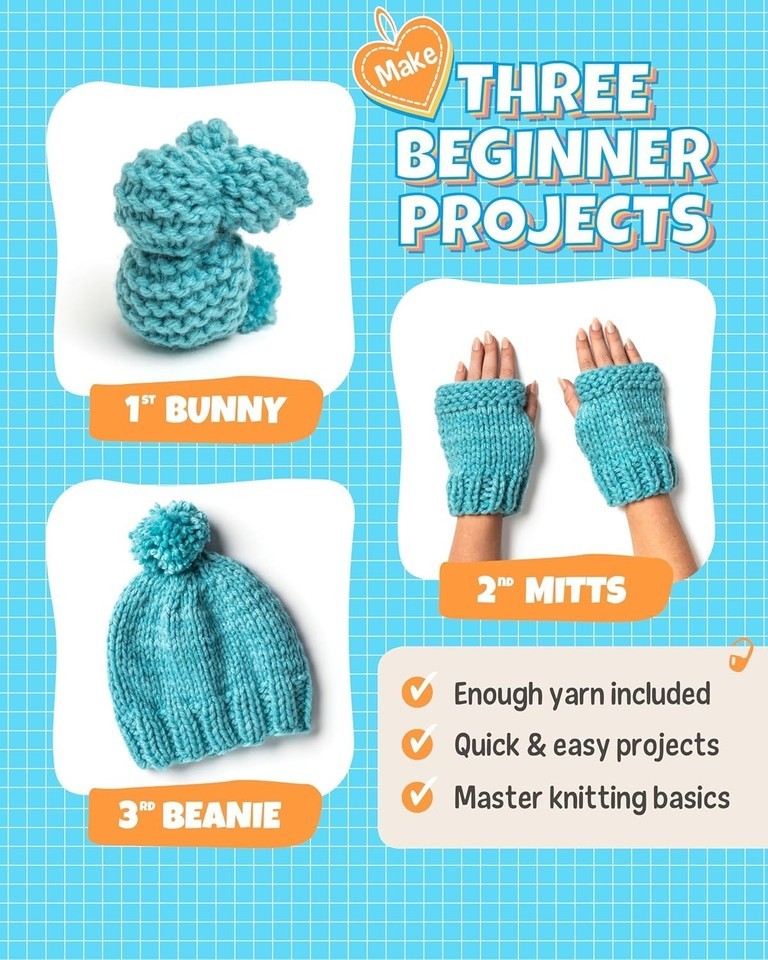 It's One of Those Gifts That Will 'Knit' Miss: This knitting set for beginners is the perfect present for women of all ages; It?s easy to use, a ton of fun, and lets anyone create something beautiful by hand; Also, our knitting kits include 3 little projects to get them started